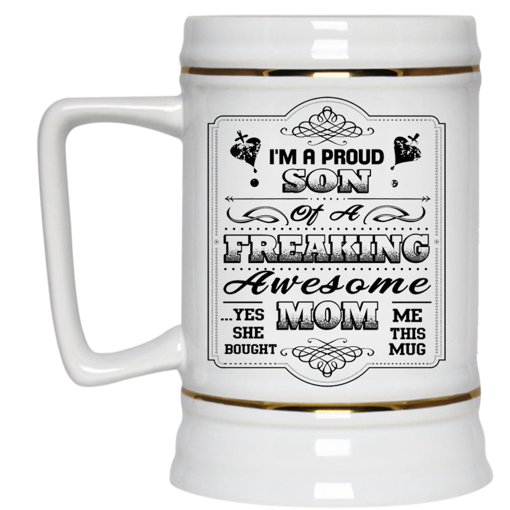 Mom And Son Beer Stein 22oz, I'm A Proud Son Of An Awesome Mom Beer Mug