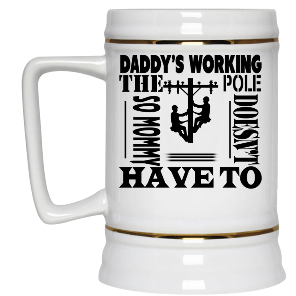 Mommy Doesn't Have To Beer Stein 22oz, Daddy's Working The Pole Beer Mug