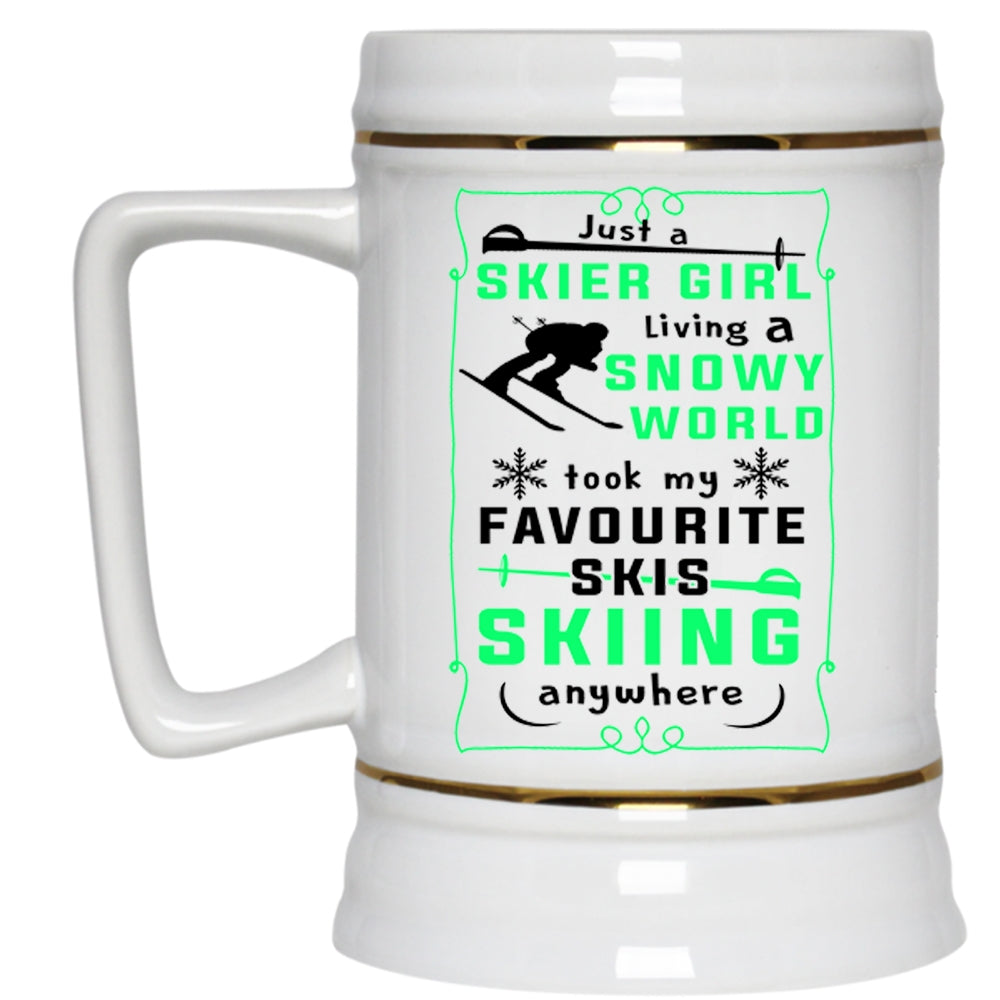 My Favorite Skis Skiing Anywhere Beer Stein 22oz, Just A Skier Girl Living A Snowy World Beer Mug