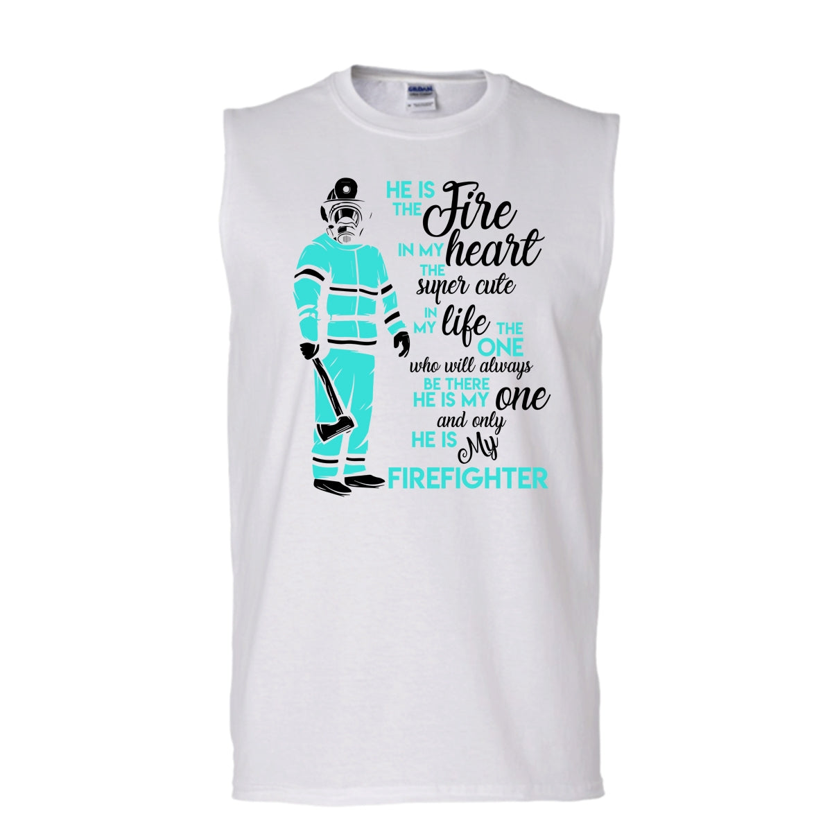My Man Risk His Life To Save Strangers T Shirt, Gift For Firefighter T Shirt, Awesome t-shirts (Men's Cotton Sleeveless)