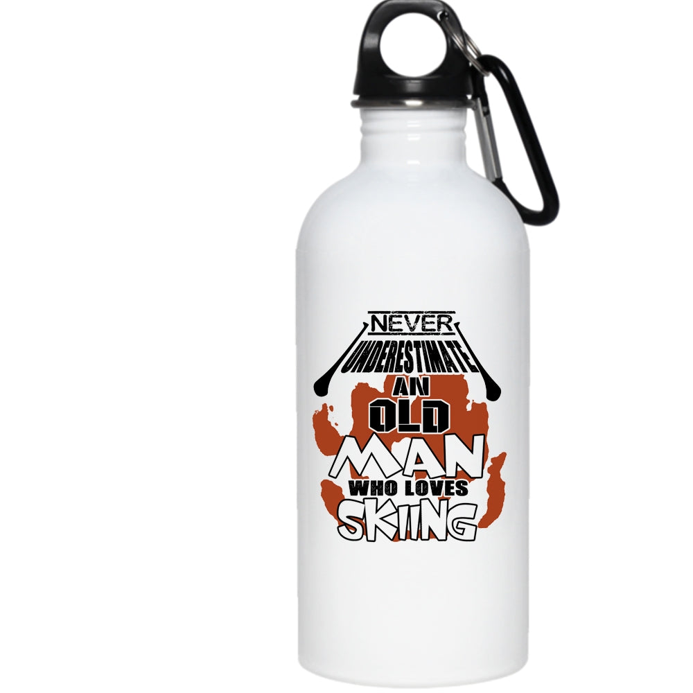 Never Underestimate An Old Man Loves Skiing 20 oz Stainless Steel Bottle,Cool Dad Outdoor Sports Water Bottle