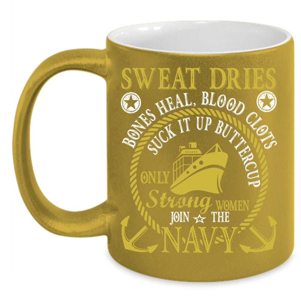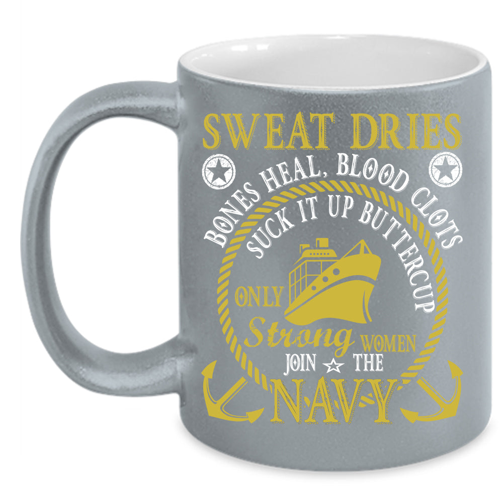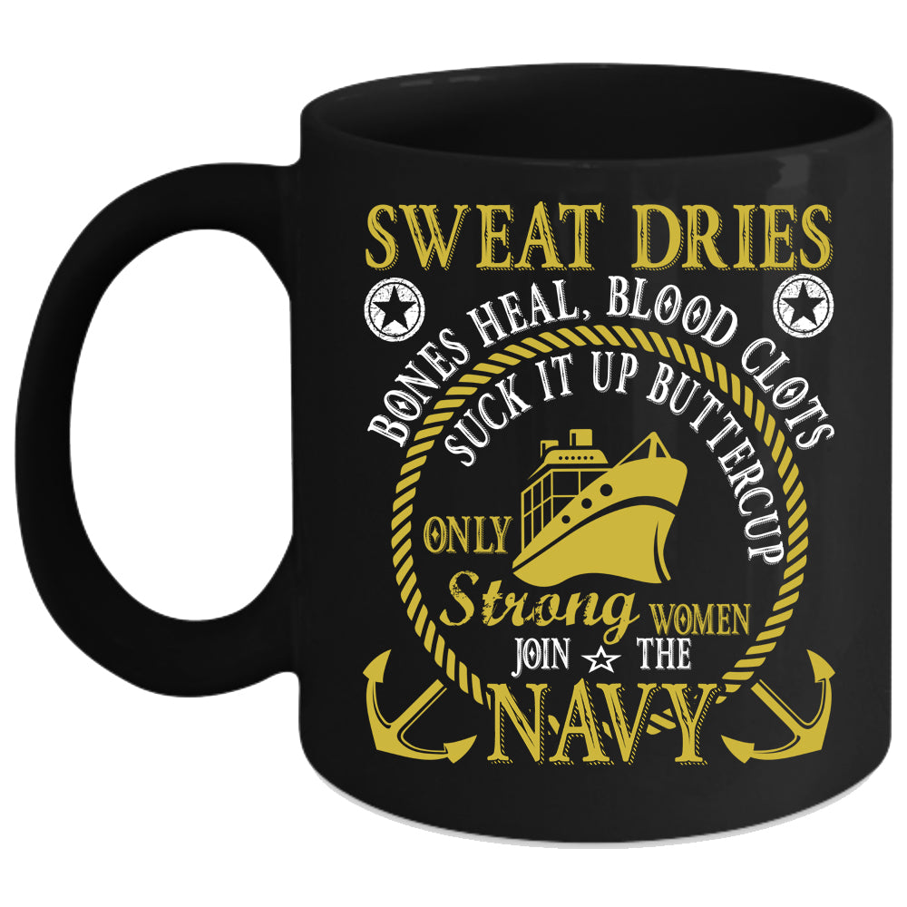 Only Strong Women Join The Navy Coffee Mug, Cool Lady Coffee Cup