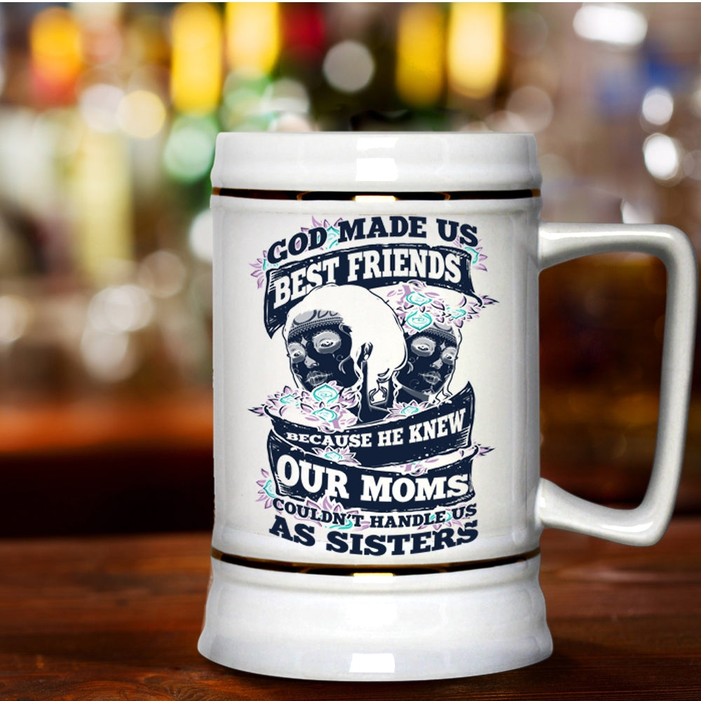 Our Moms Couldn't Handle Us Sister Beer Stein 22oz, God Made Us Best Friends Beer Mug