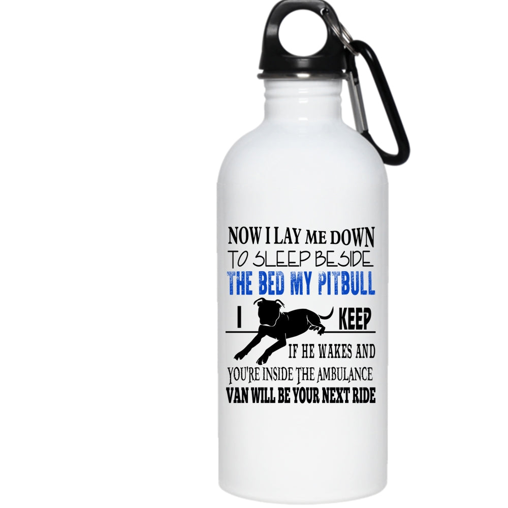 Sleep Beside The Bed My Pitbull 20 oz Stainless Steel Bottle,Funny Pit Bull Outdoor Sports Water Bottle