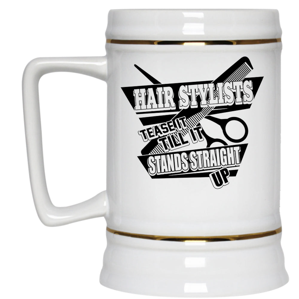 Tease It Till It Stands Straight Up Beer Stein 22oz, Hair Stylist Beer Mug