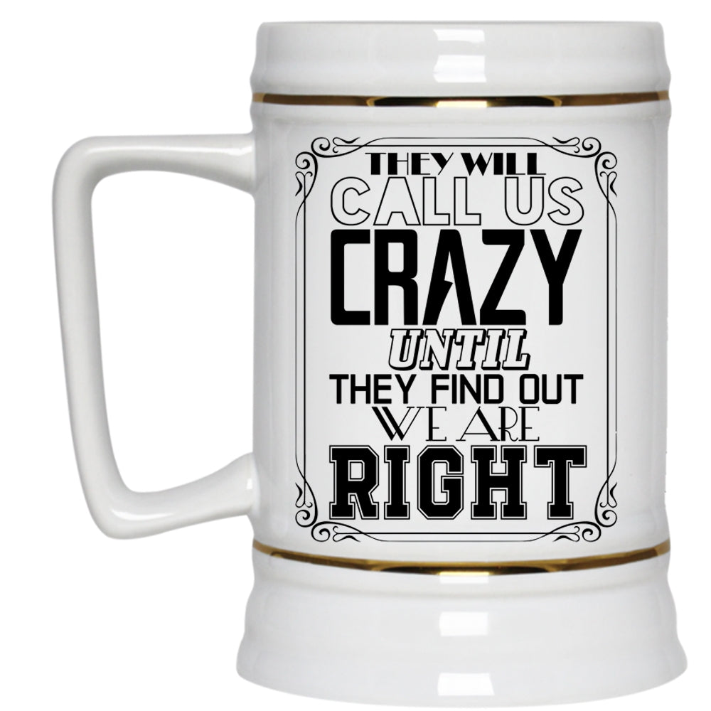 They Find Out We Are Right Beer Stein 22oz, They Will Call Us Crazy Beer Mug