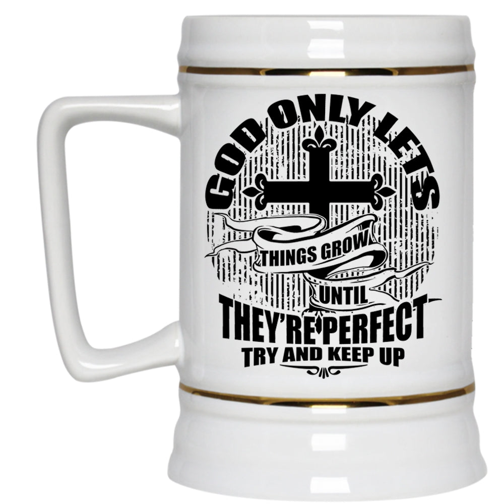 They're Perfect Try And Keep up Beer Stein 22oz, God Only Lets Things Grow Beer Mug