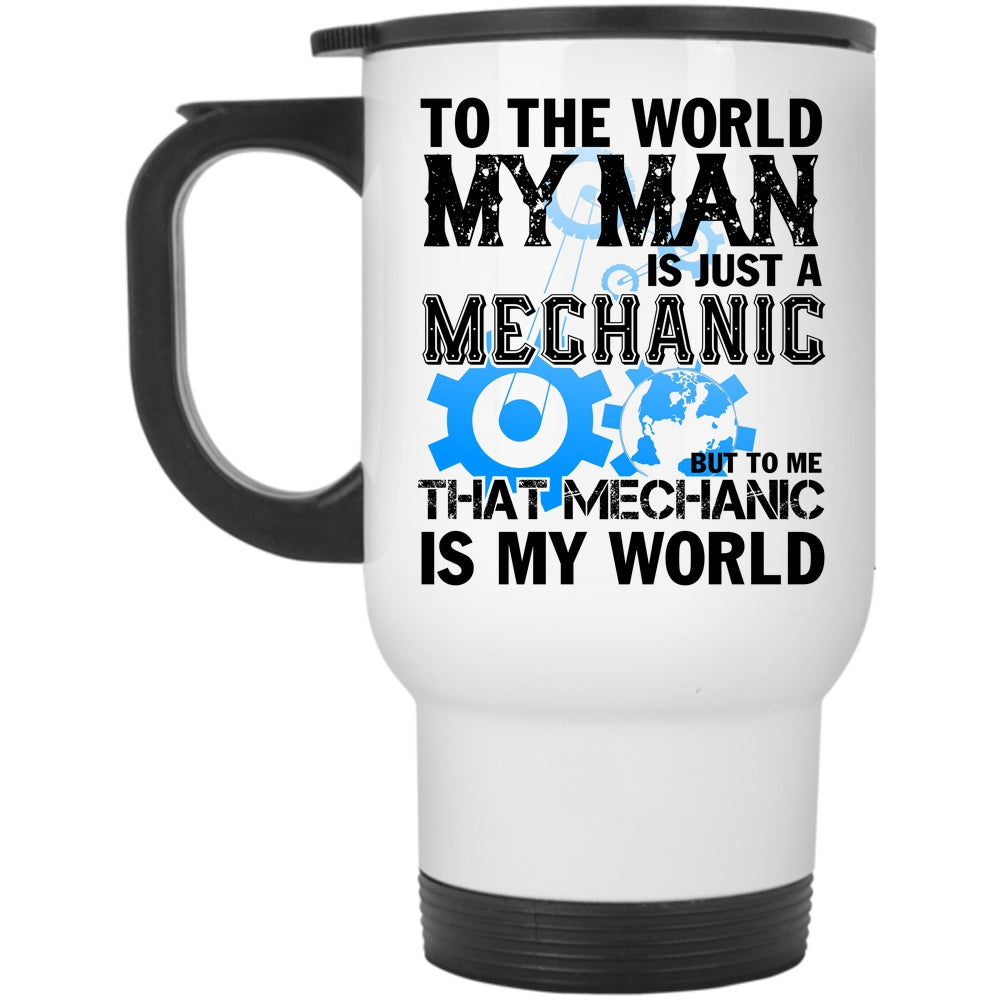 To Me That Mechanic Is My World Travel Mug, My Man Is Just A Mechanic Mug