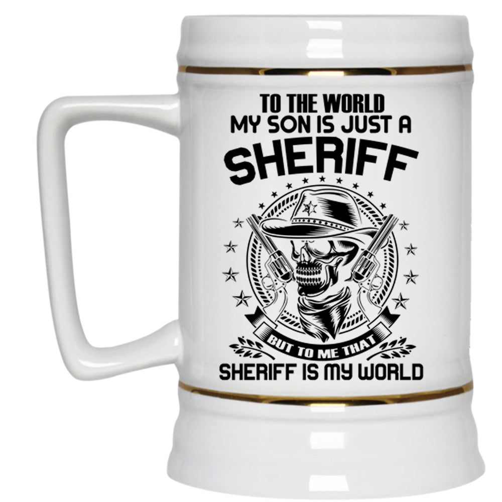 To me That Sheriff Is My World Beer Stein 22oz, My Son Is Just A Sheriff Beer Mug