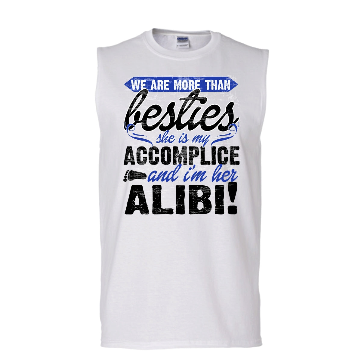 We Are More Than Besties T Shirt, She Is My Accomplice T Shirt, Awesome t-shirts (Men's Cotton Sleeveless)