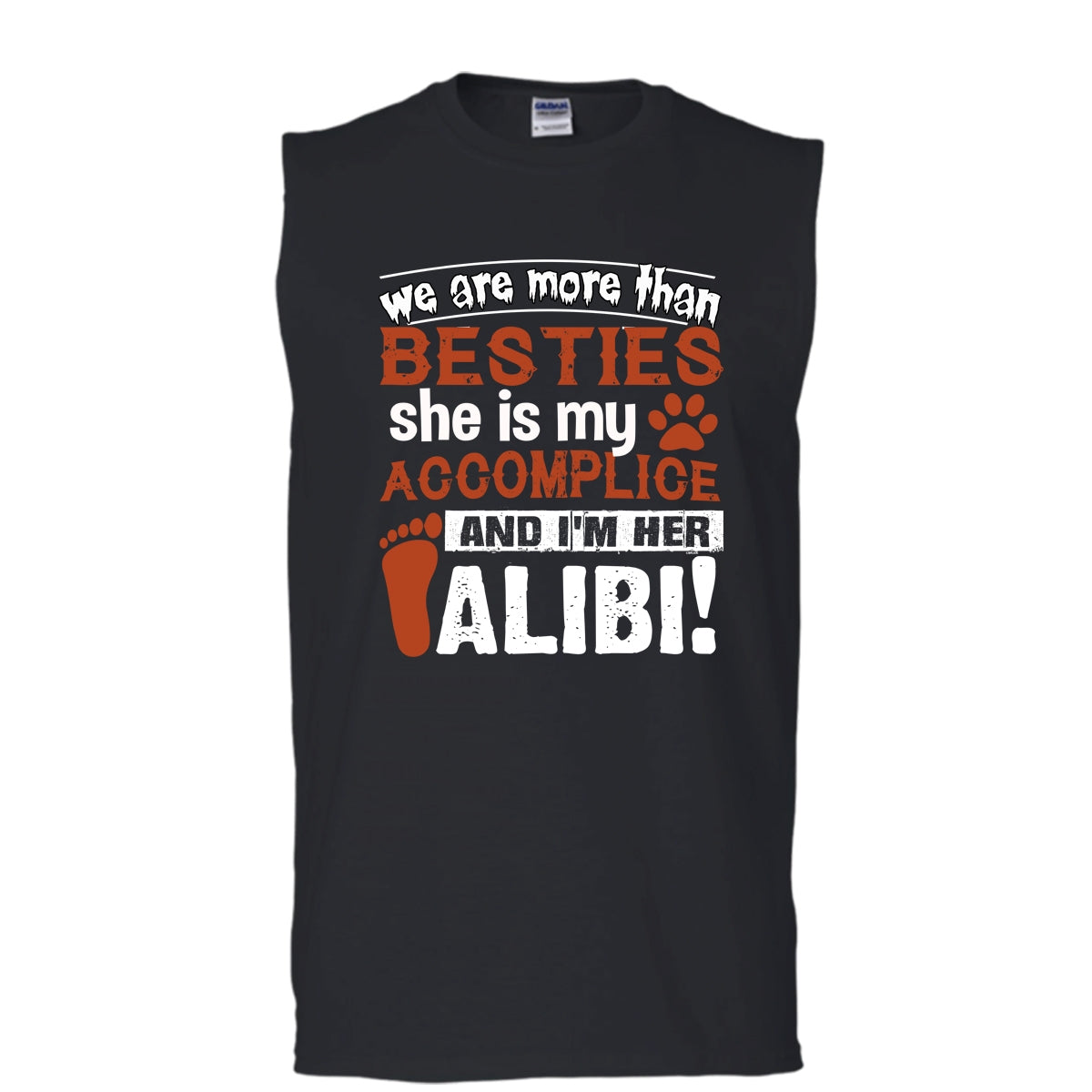 We Are More Than Besties T Shirt, She Is My Accomplice Tank Top (Men's Cotton Sleeveless)