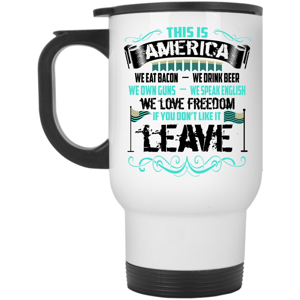 We Eat Bacon We Love Freedom Travel Mug, This Is America Mug