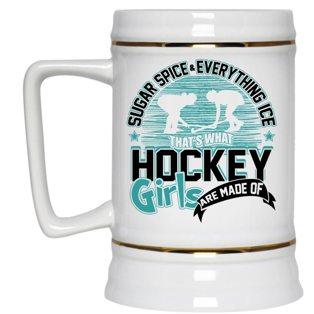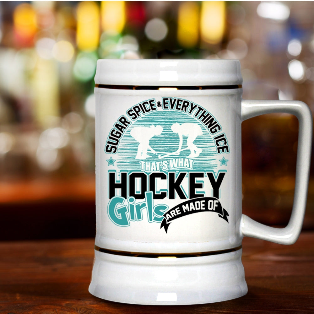 What Hockey Girls Are Made Of Beer Stein 22oz, Sugar Spice And Everything Ice Beer Mug