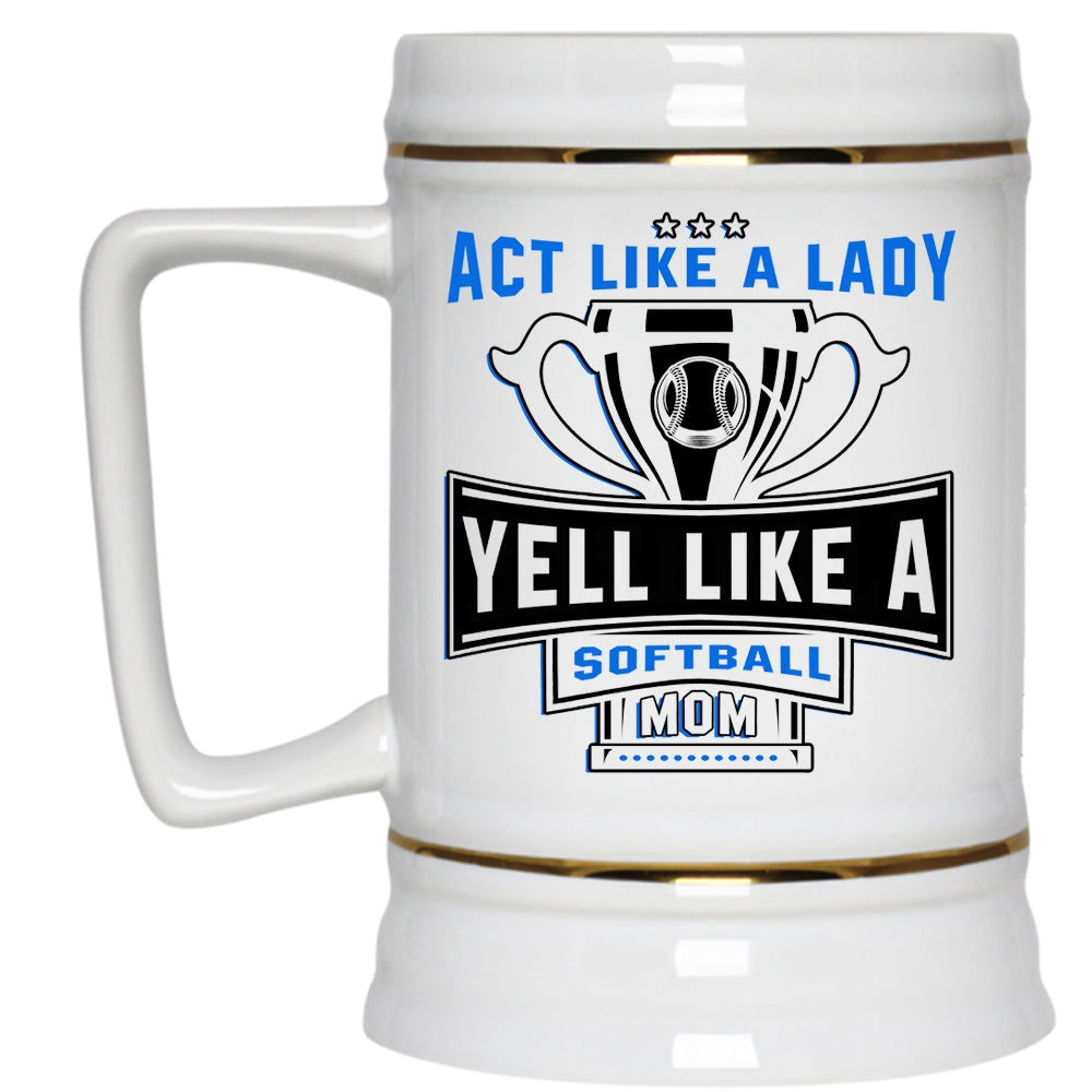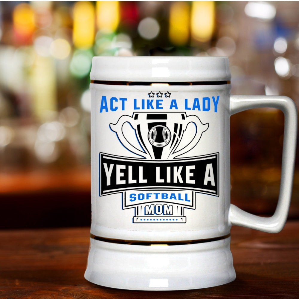 Yell Like A Softball Mom Beer Stein 22oz, Act Like A Lady Beer Mug