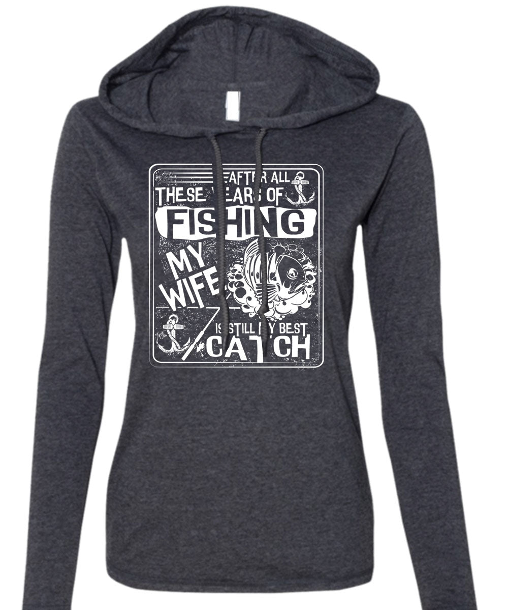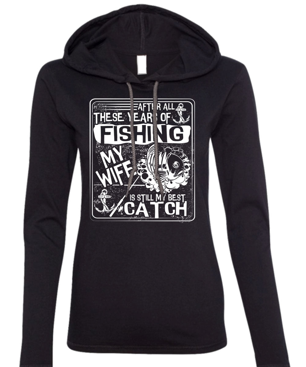 After All There Years Of Fishing T Shirt, My Wife Is Still My Best Catch T Shirt (Anvil Ladies Ringspun Hooded)