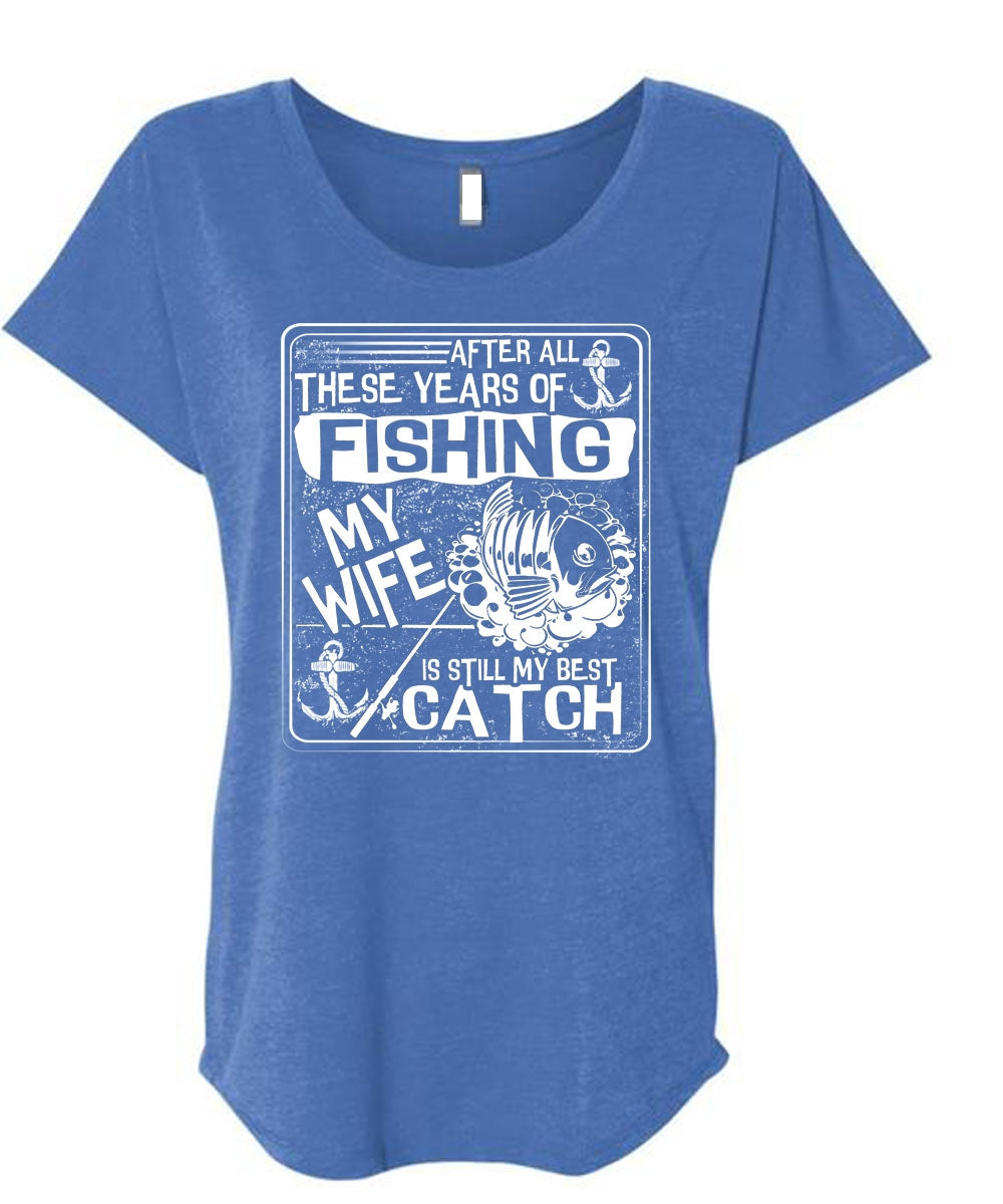 After All There Years Of Fishing T Shirt, My Wife Is Still My Best Catch T Shirt, Cool Shirt (Ladies' Triblend Dolman Sleeve)