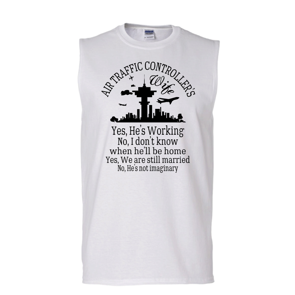 Air Traffic Controller's Wife Shirt, He's Not Imaginary Shirt (Men's Cotton Sleeveless)
