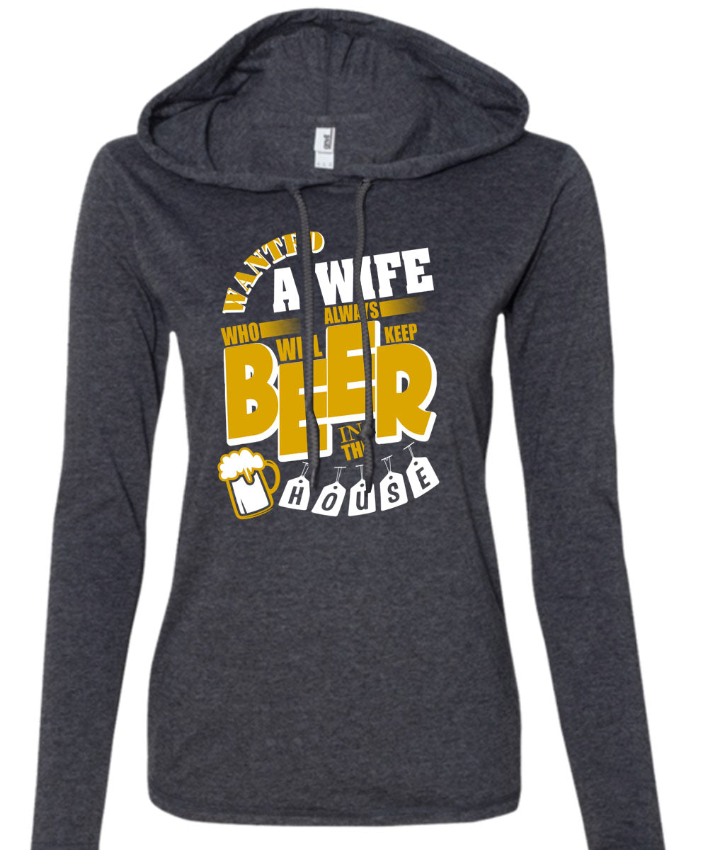 Always Will Keep Beer In The House T Shirt, Wanted A Wife T Shirt (Anvil Ladies Ringspun Hooded)