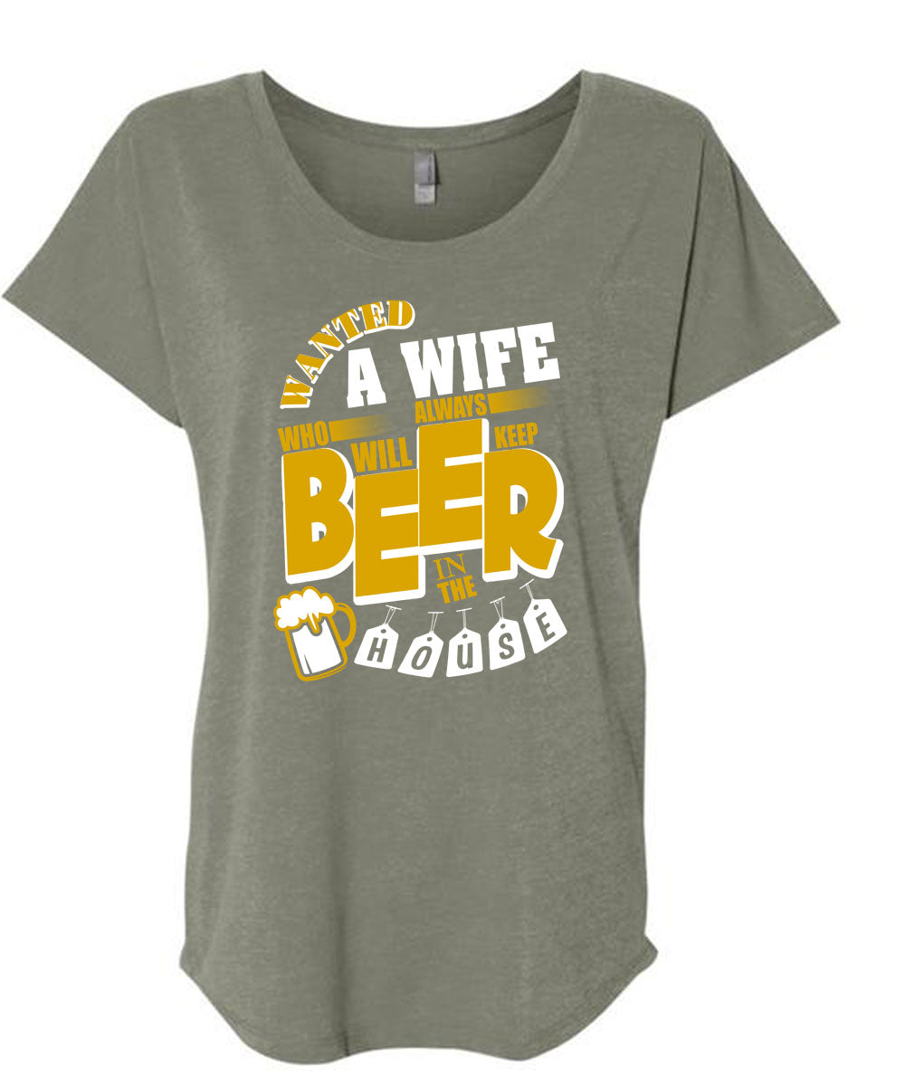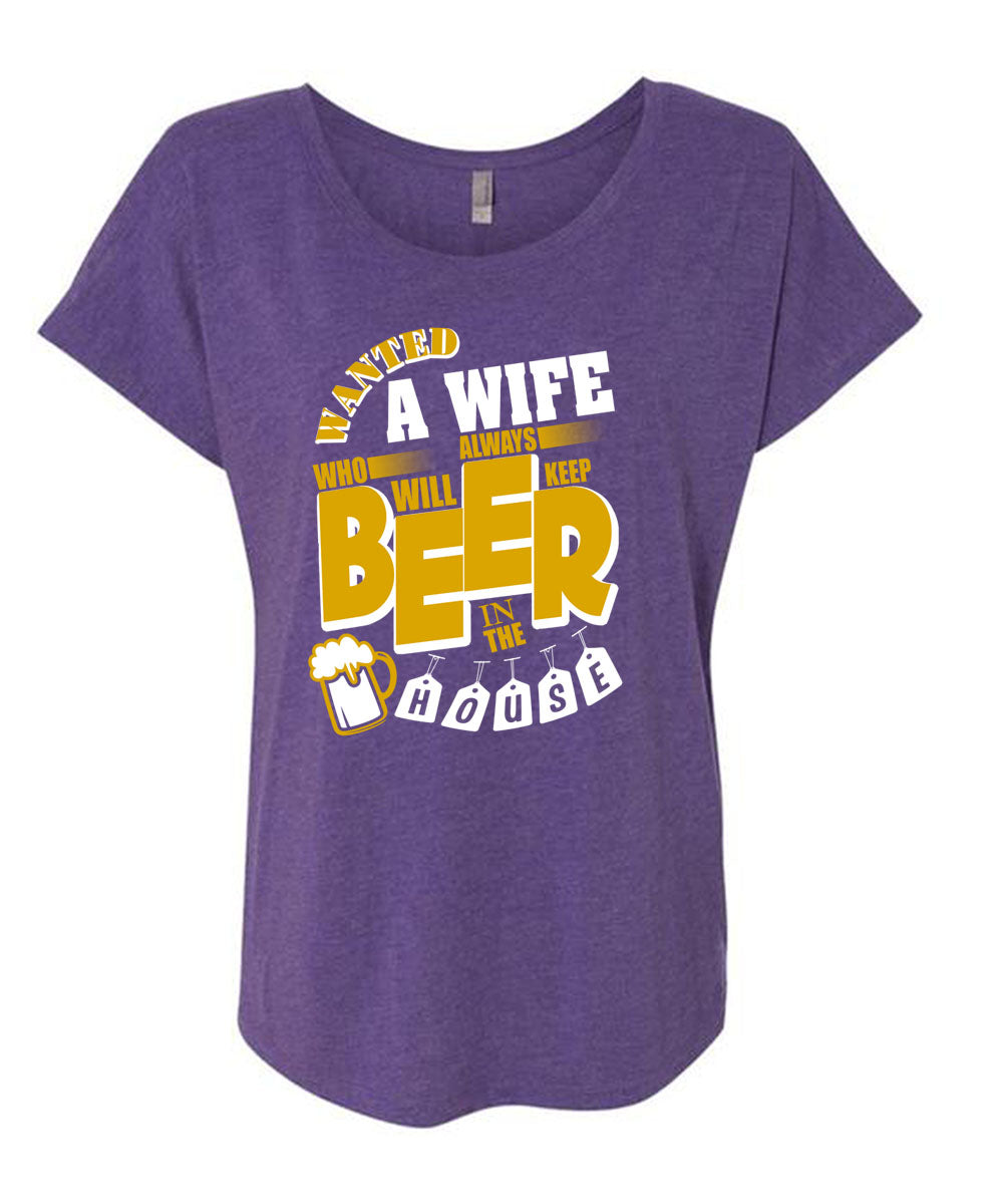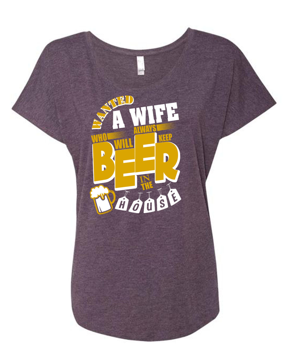 Always Will Keep Beer In The House T Shirt, Wanted A Wife T Shirt, Cool Shirt (Ladies' Triblend Dolman Sleeve)