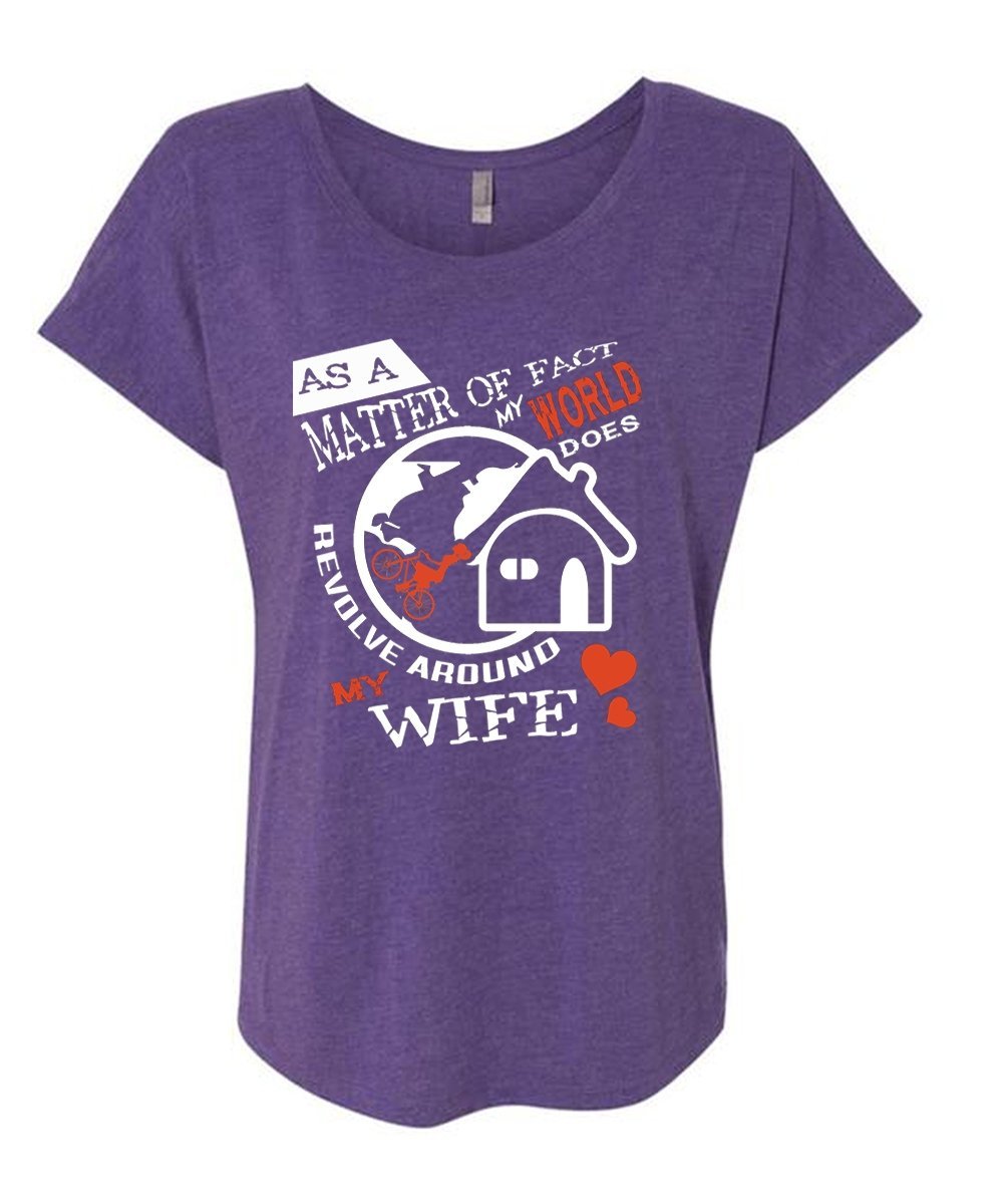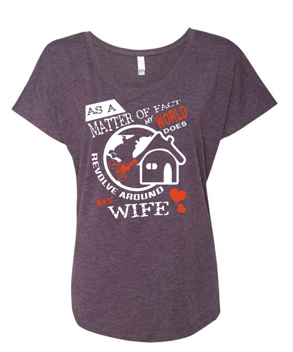 As A Matter Of Fact My World Does Revolve Around My Wife T Shirt, Biker T Shirt (Ladies' Triblend Dolman Sleeve)