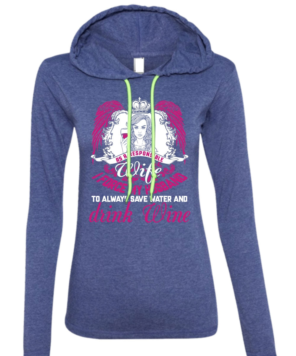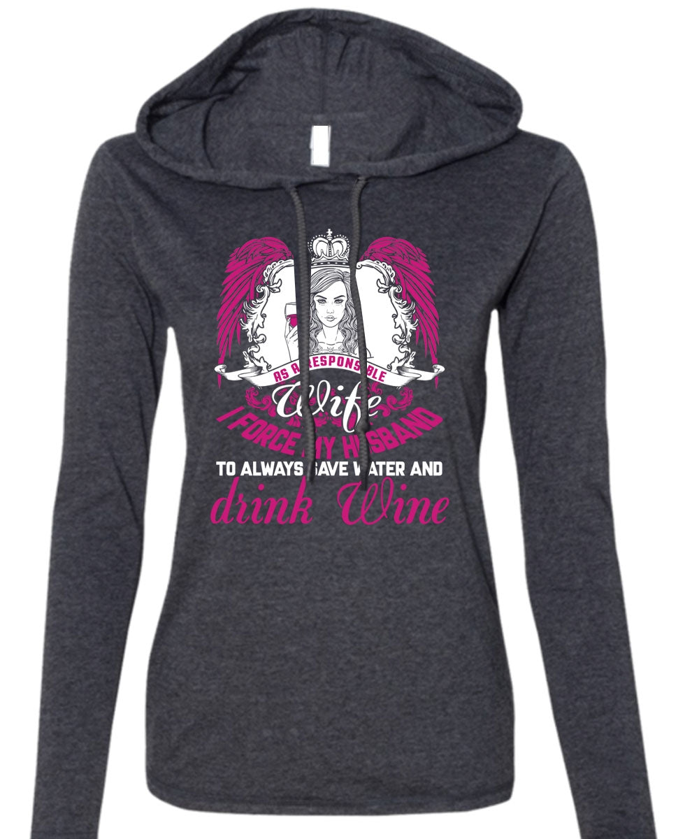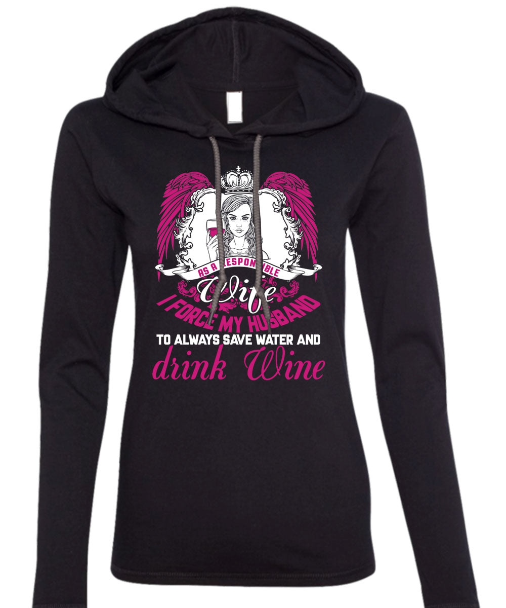 As A Responsible Wife T Shirt, Water And Drink Wine T Shirt (Anvil Ladies Ringspun Hooded)