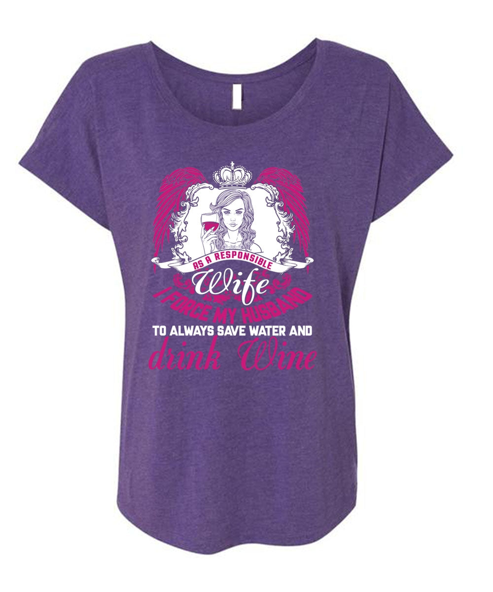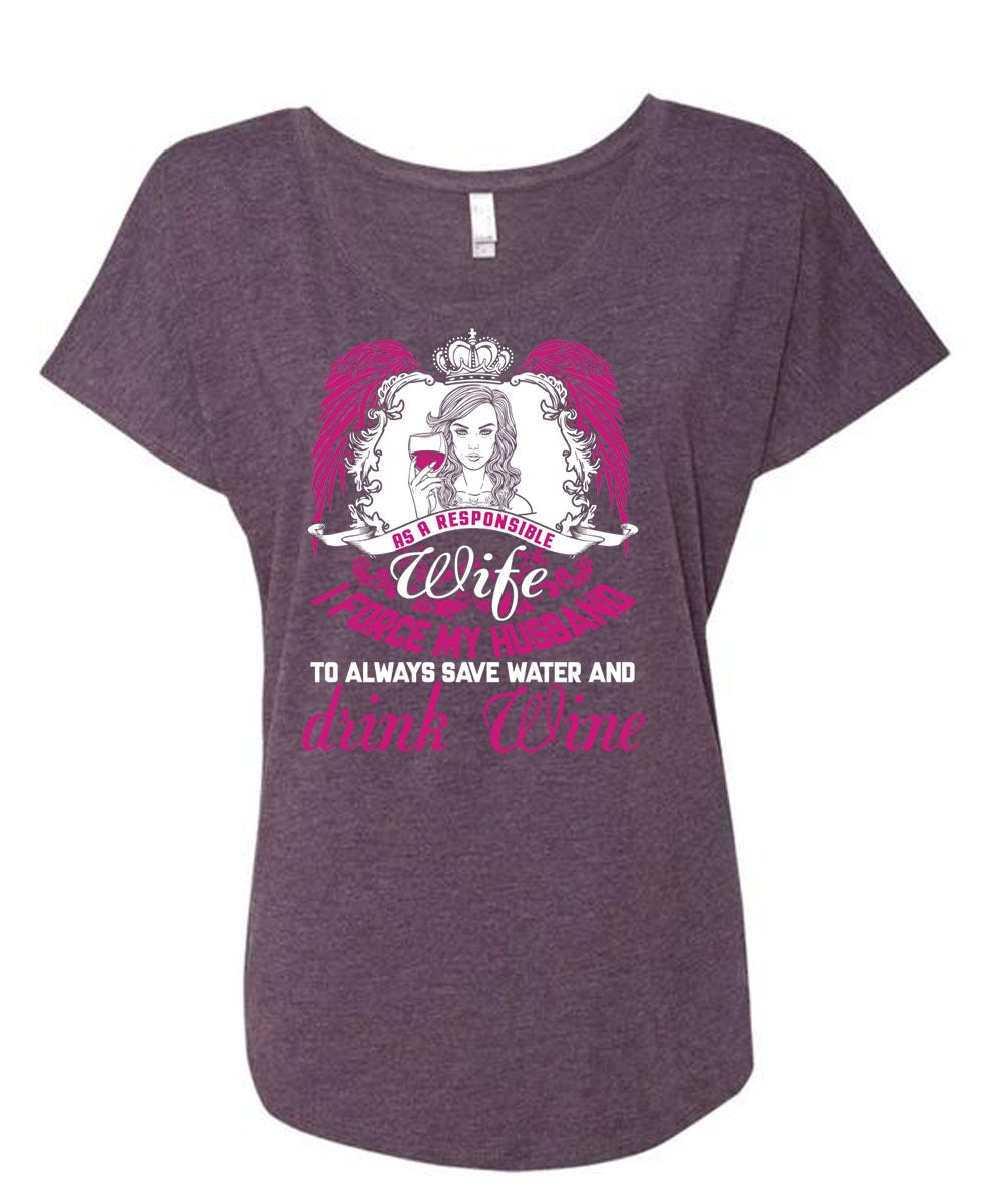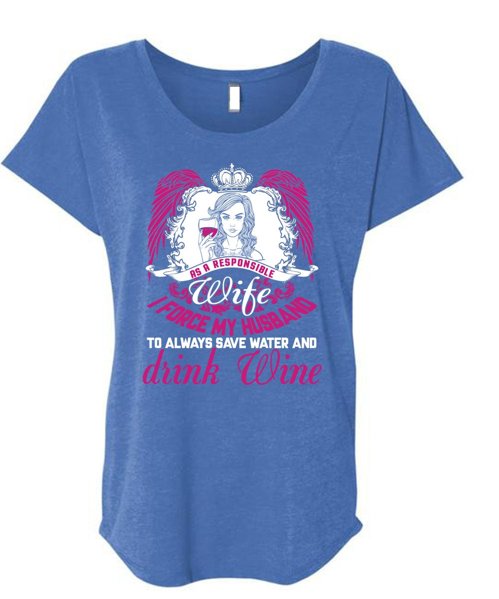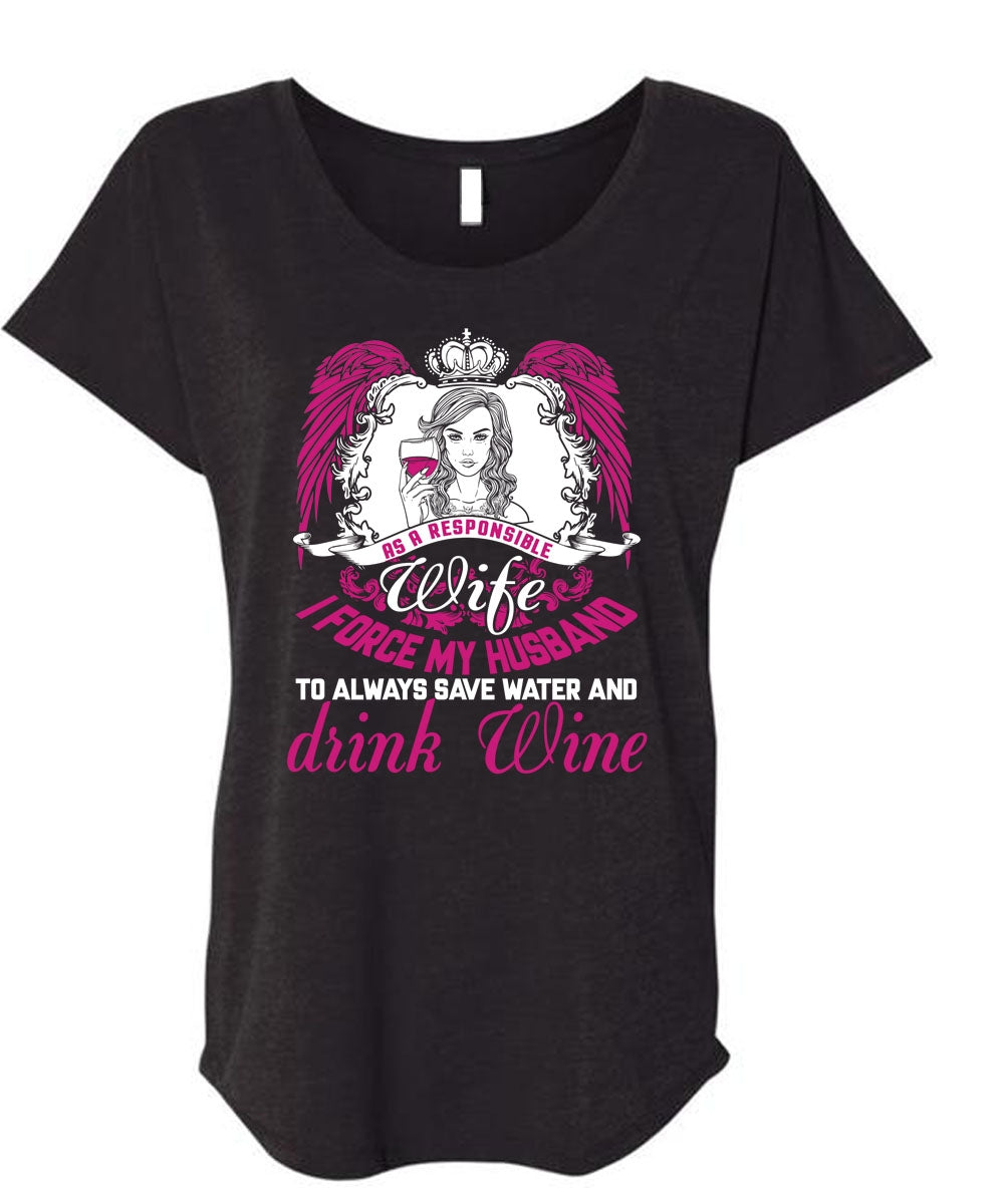 As A Responsible Wife T Shirt, Water And Drink Wine T Shirt, Cool Shirt (Ladies' Triblend Dolman Sleeve)