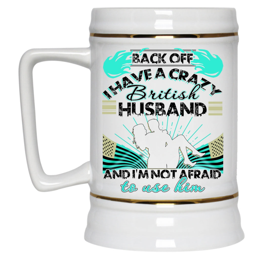 Awesome British Husband Beer Stein 22oz, I Have A Crazy British Husband Beer Mug