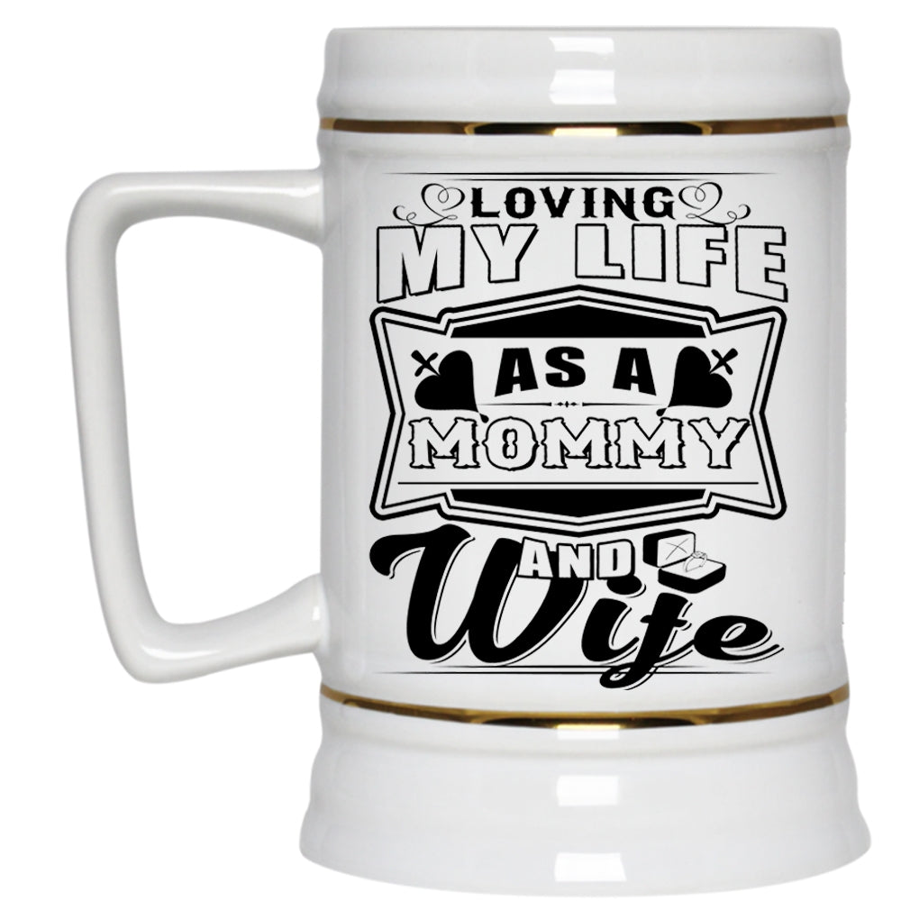 Awesome Mom Beer Stein 22oz, Loving My Life As A Mommy And Wife Beer Mug