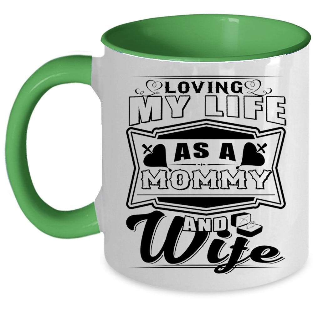Awesome Mom Coffee Mug, Loving My Life As A Mommy And Wife Accent Mug