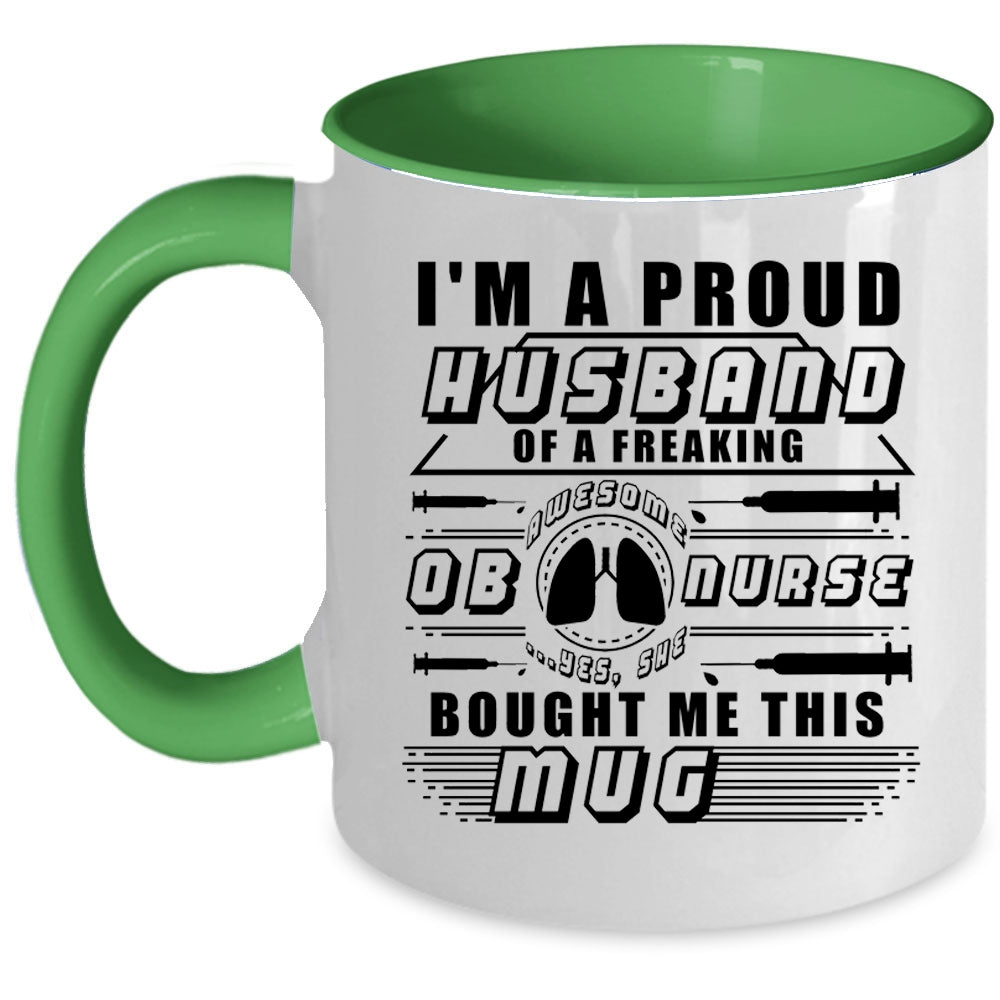 Awesome Nurses Coffee Mug, I'm A Proud Husband Of An OB Nurse Accent Mug