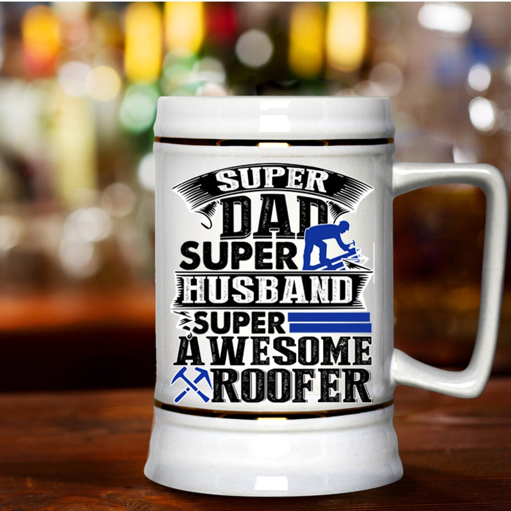 Awesome Roofer Beer Stein 22oz, Dad Husband Beer Mug