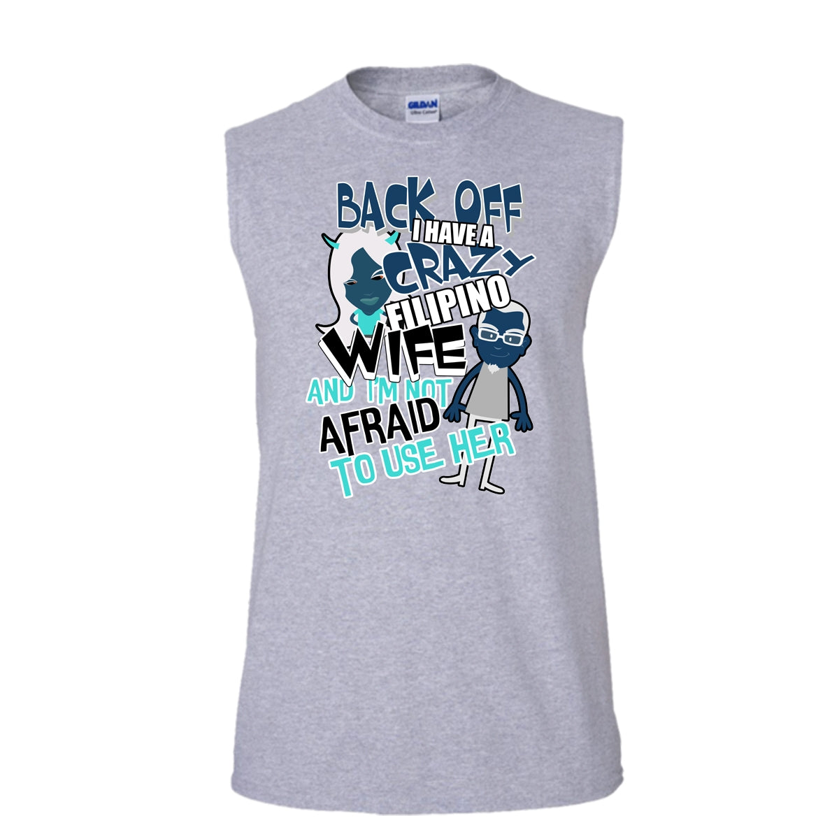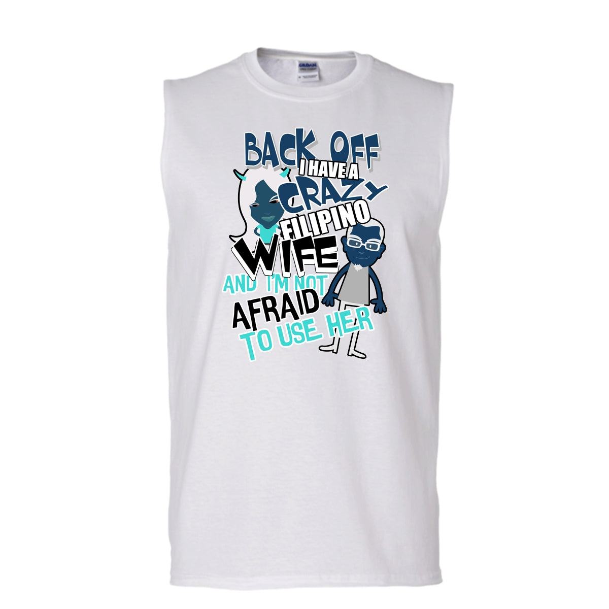 Back Off I Haeve A Crazy Filipino Wife T Shirt, Coolest Filipino Wife T Shirt, Awesome t-shirts (Men's Cotton Sleeveless)