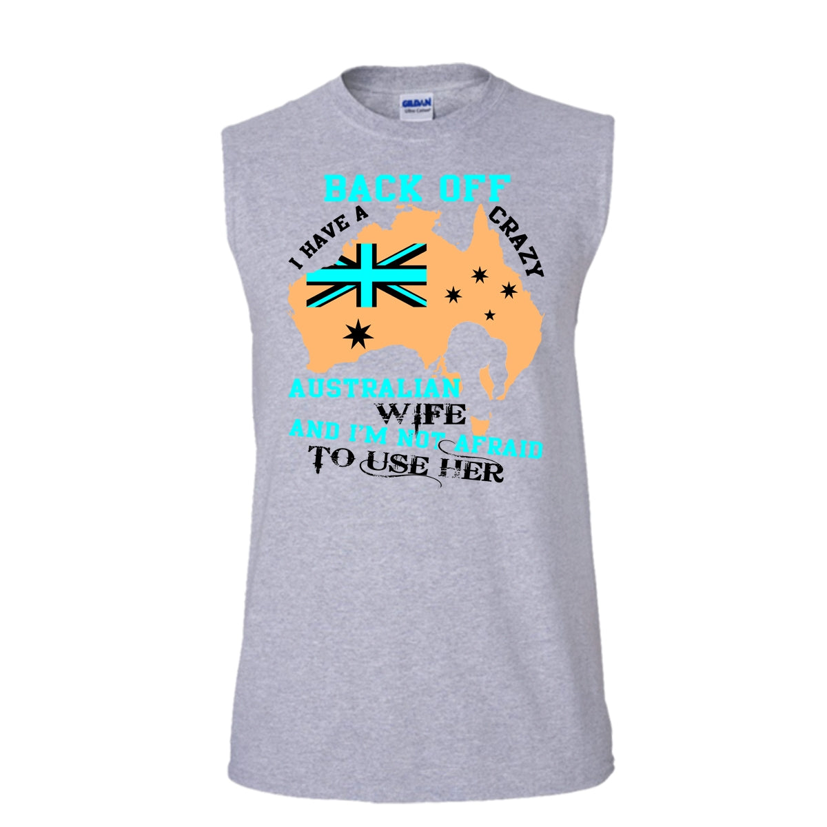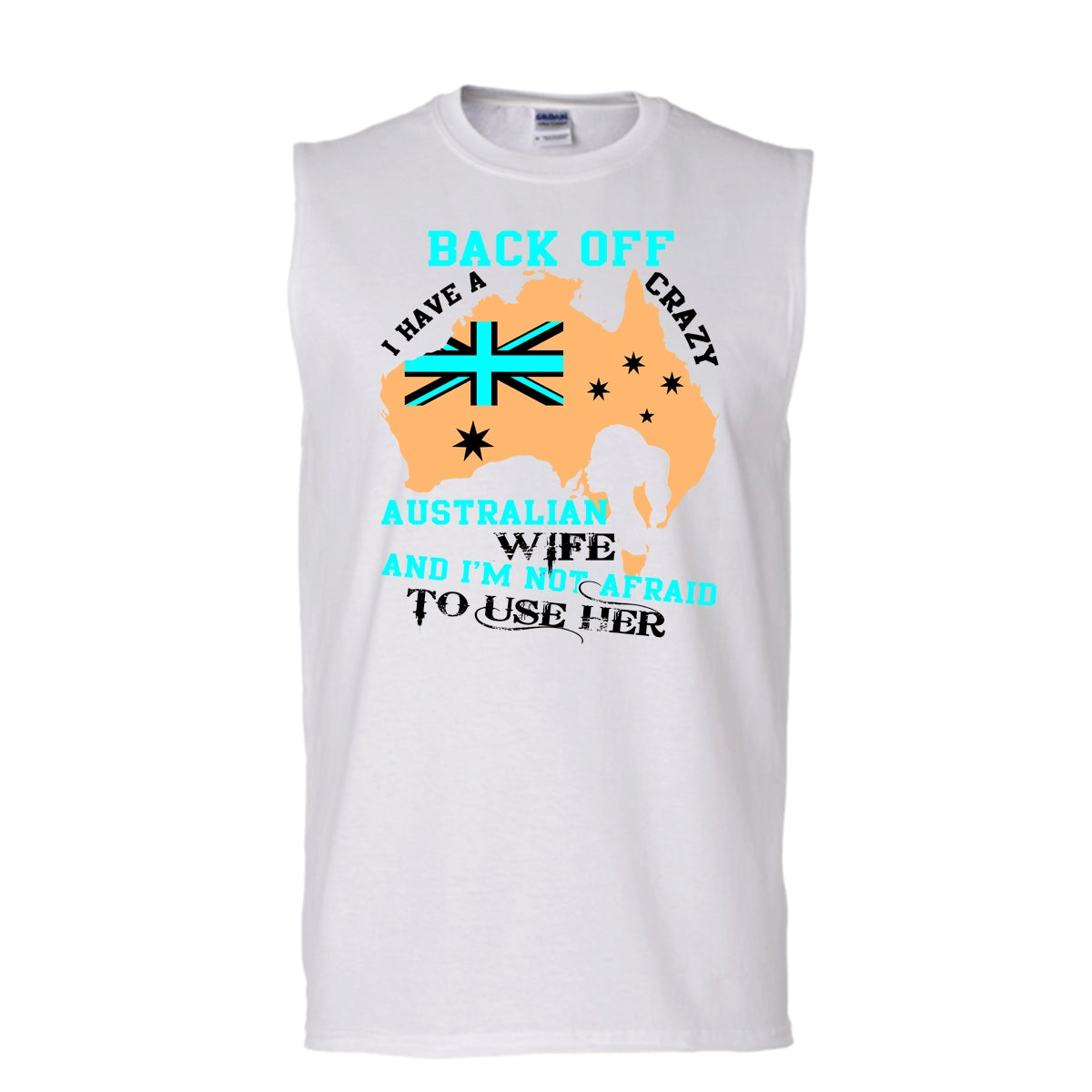 Back Off I Have A Crazy Australian Wife T Shirt, Coolest Australian Wife T Shirt, Awesome t-shirts (Men's Cotton Sleeveless)