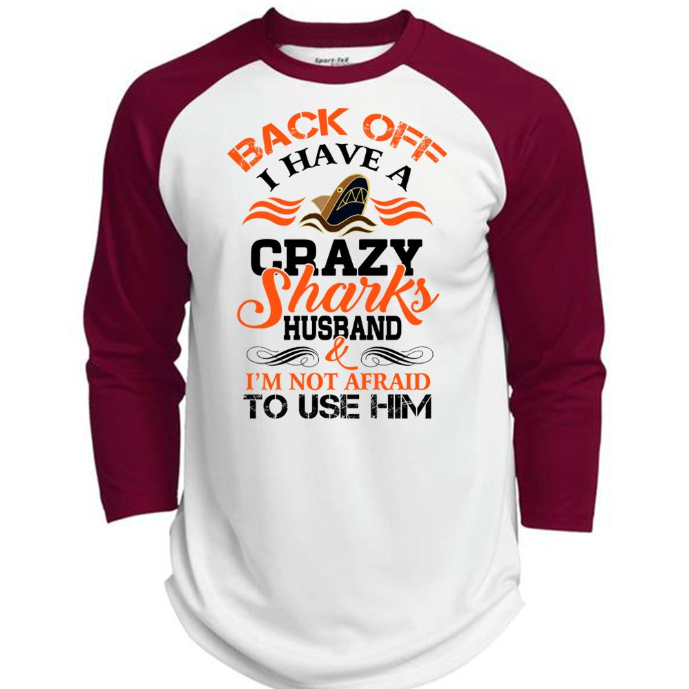 Back Off I Have A Crazy Sharks Husband T Shirt, Favorite T Shirt (Polyester Game Baseball Jersey)