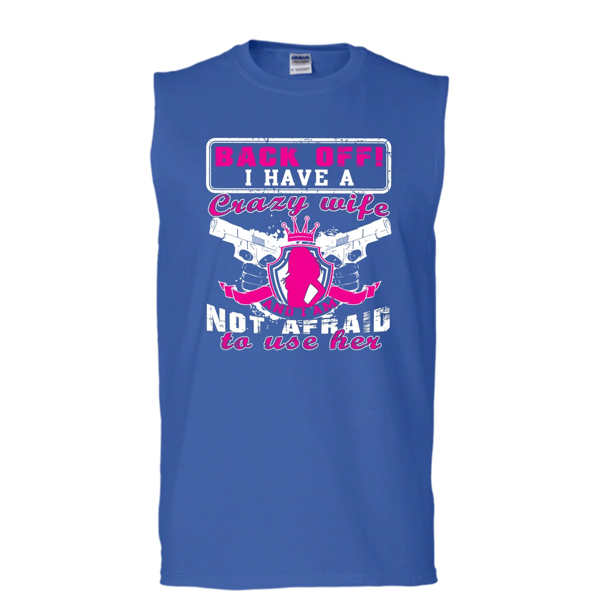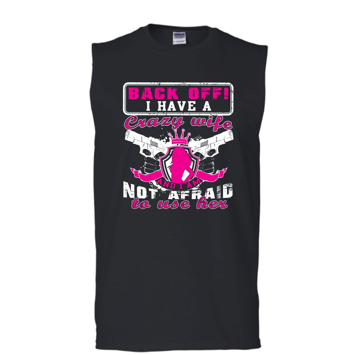 Back Off I Have A Crazy Wife T Shirt, I Am Not Afraid To Use Her T Shirt, Cool T Shirt (Men's Cotton Sleeveless)