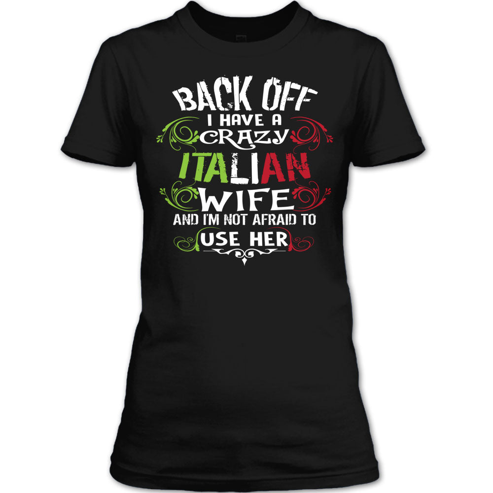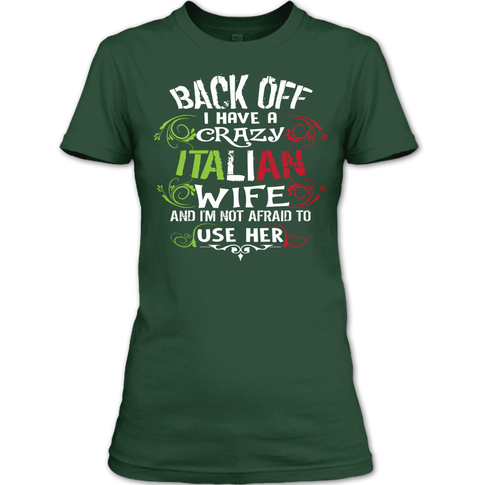 Back Off I Have A Italian Wife T Shirt, I'm Not Afraid To Use Her T Shirt