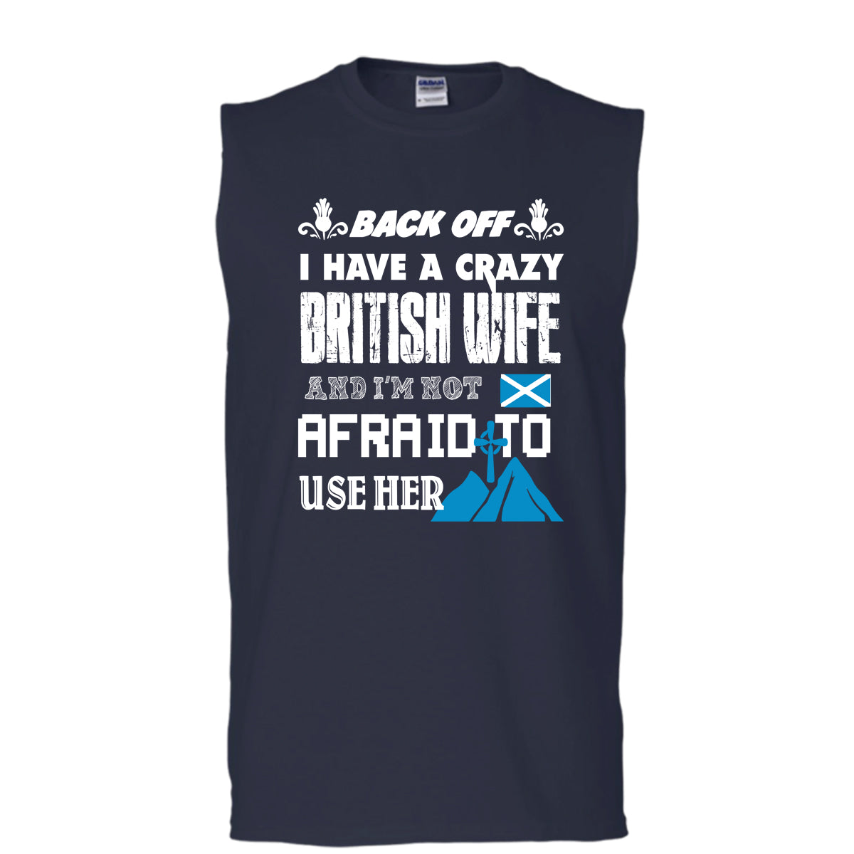 Back Off T Shirt, I Have A Crazy British Wife T Shirt, Cool T Shirt (Men's Cotton Sleeveless)