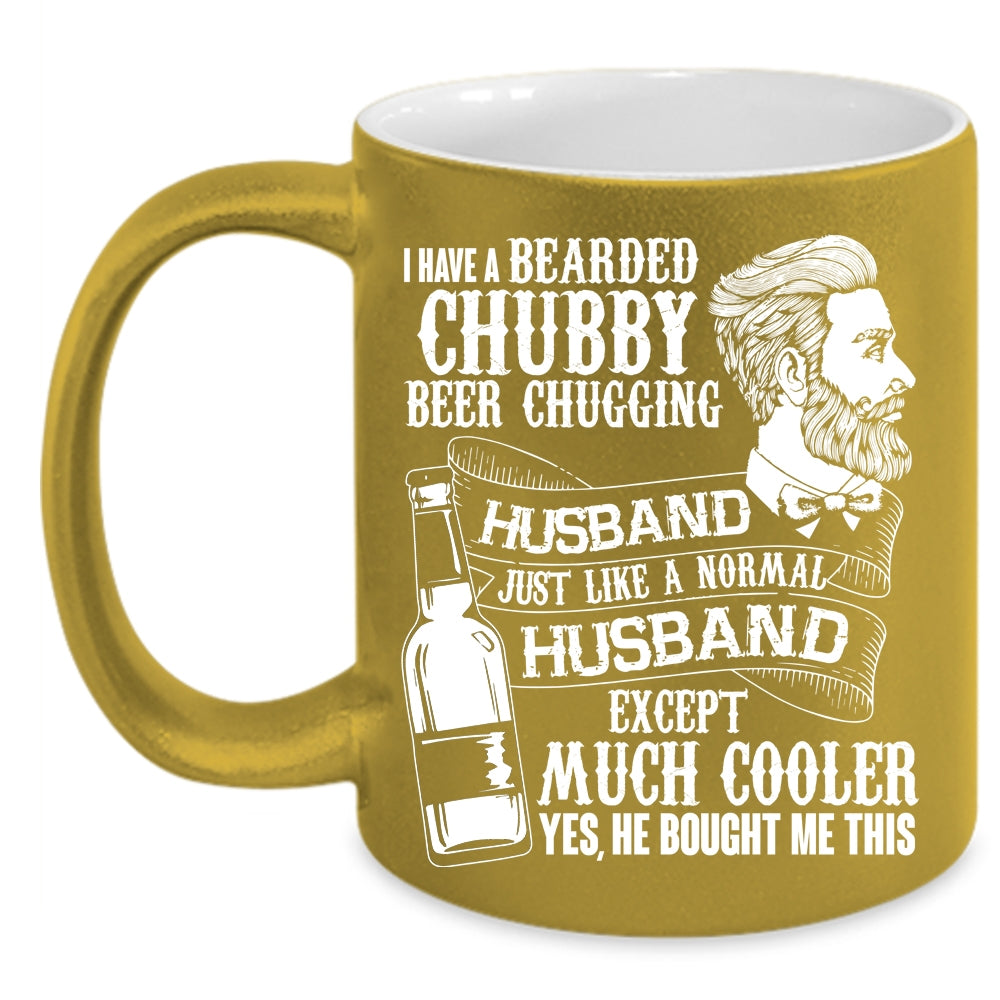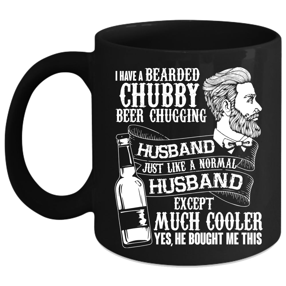 Bearded Chubby Beer Chugging Husband Coffee Mug, Cute Wife Coffee Cup