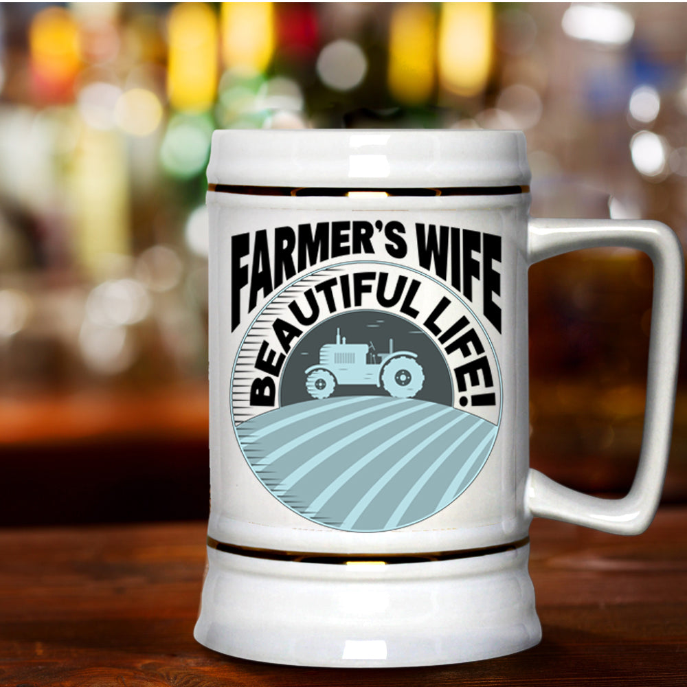 Beautiful Life Beer Stein 22oz, Farmer's Wife Beer Mug