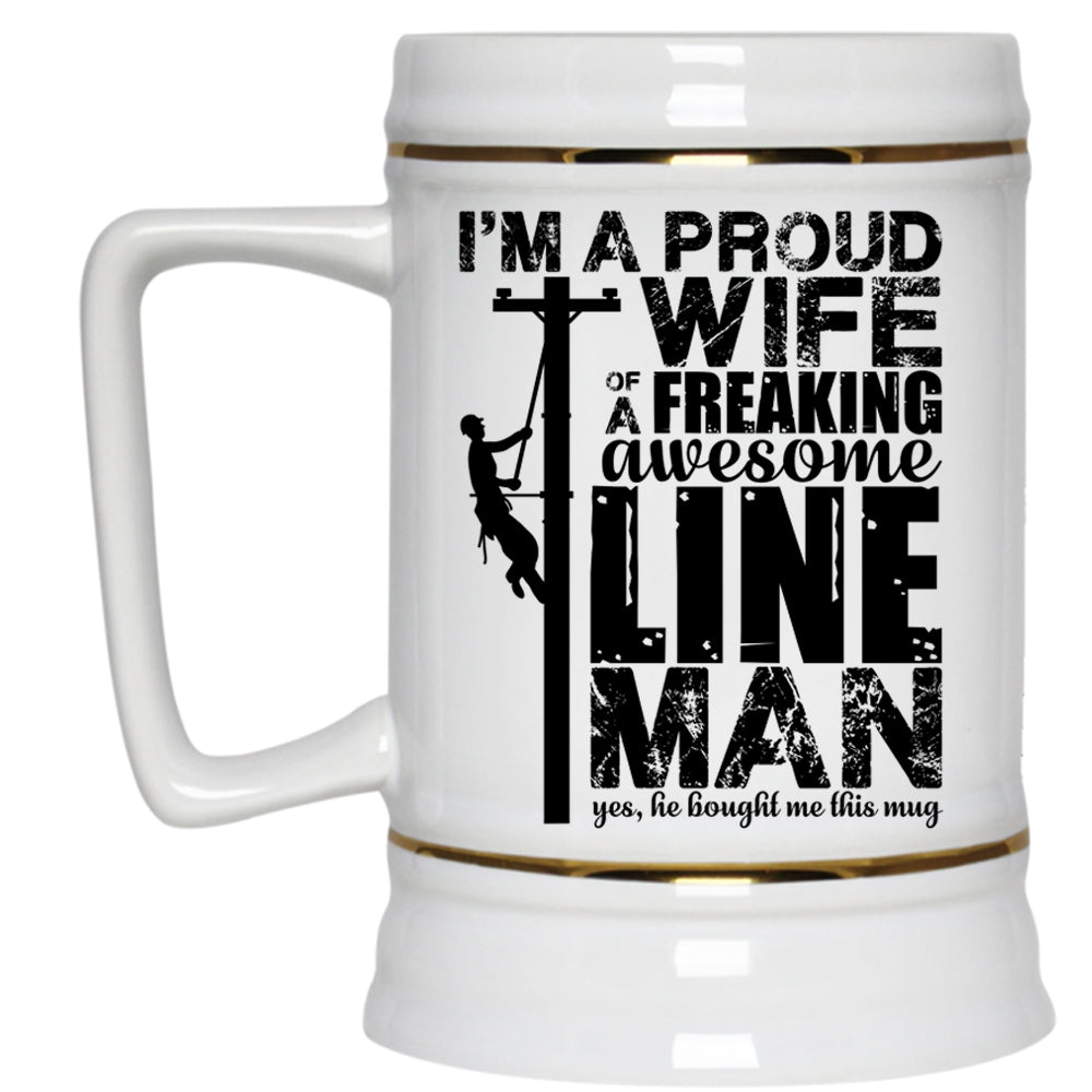 Beautiful Wife Beer Stein 22oz, I'm A Proud Wife Of An Awesome Lineman Beer Mug