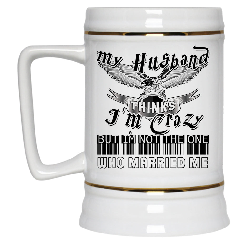 Beautiful Wife Beer Stein 22oz, My Husband Thinks I'm Crazy Beer Mug