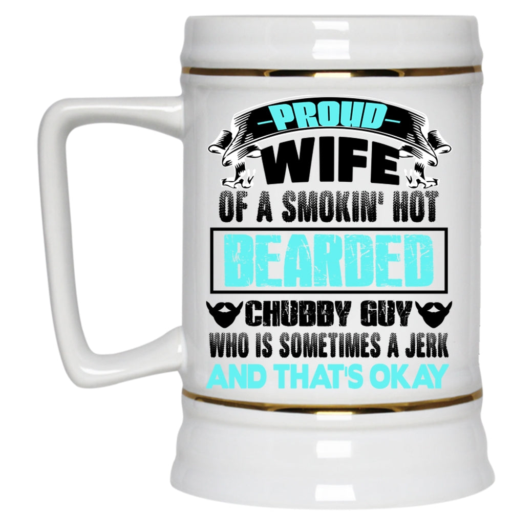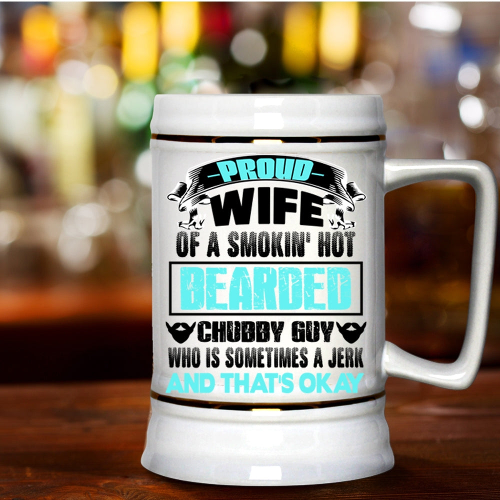 Beautiful Wife Beer Stein 22oz, Proud Wife Of A Bearded Chubby Guy Beer Mug