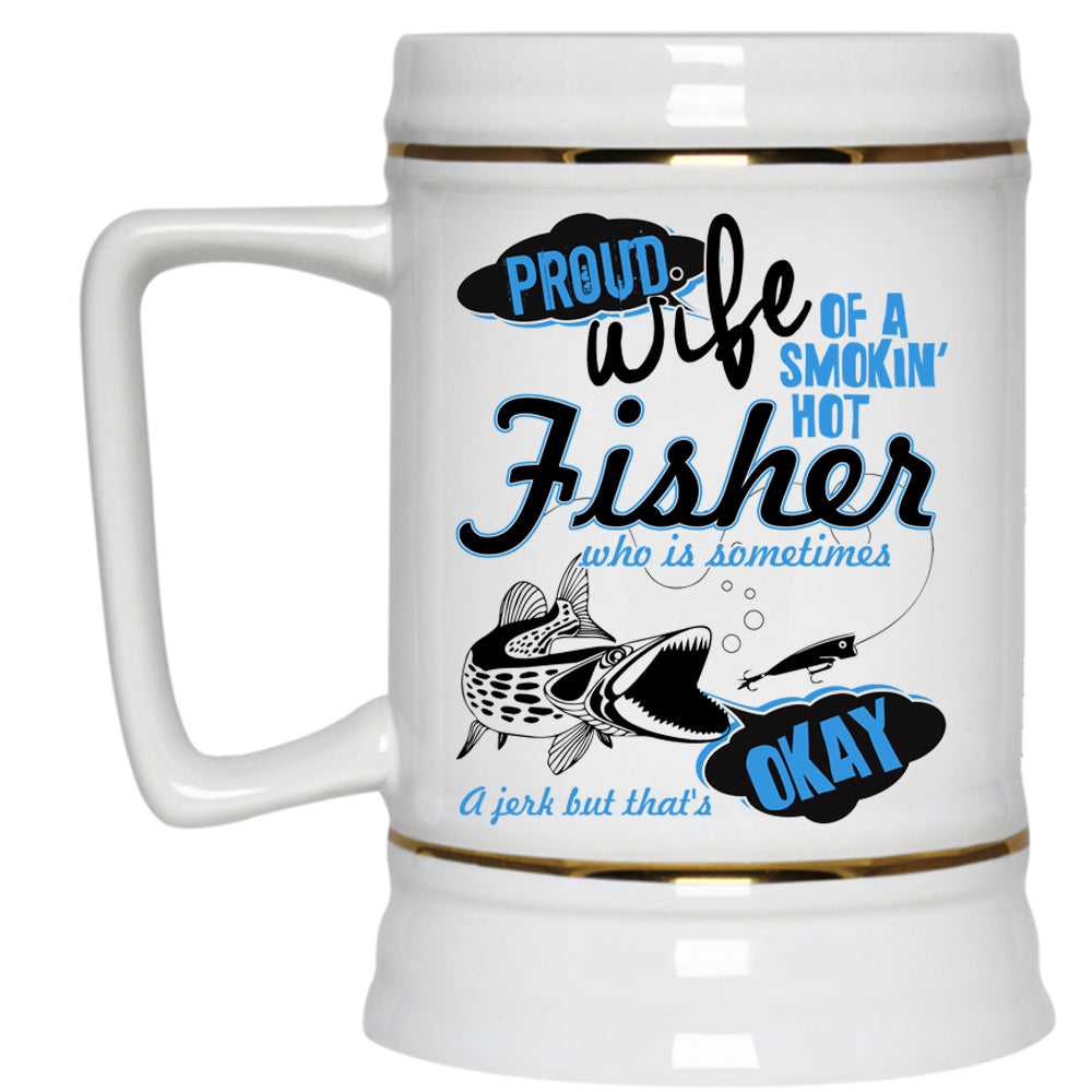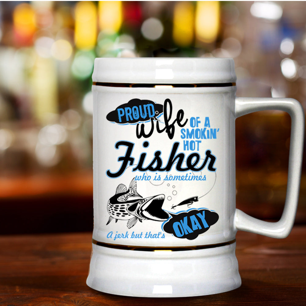 Beautiful Wife Beer Stein 22oz, Proud Wife Of A Hot Fisher Beer Mug