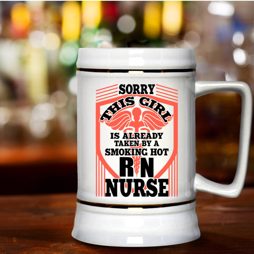 Beautiful Wife Beer Stein 22oz, This Girl Is Already Taken By A Hot Nurse Beer Mug