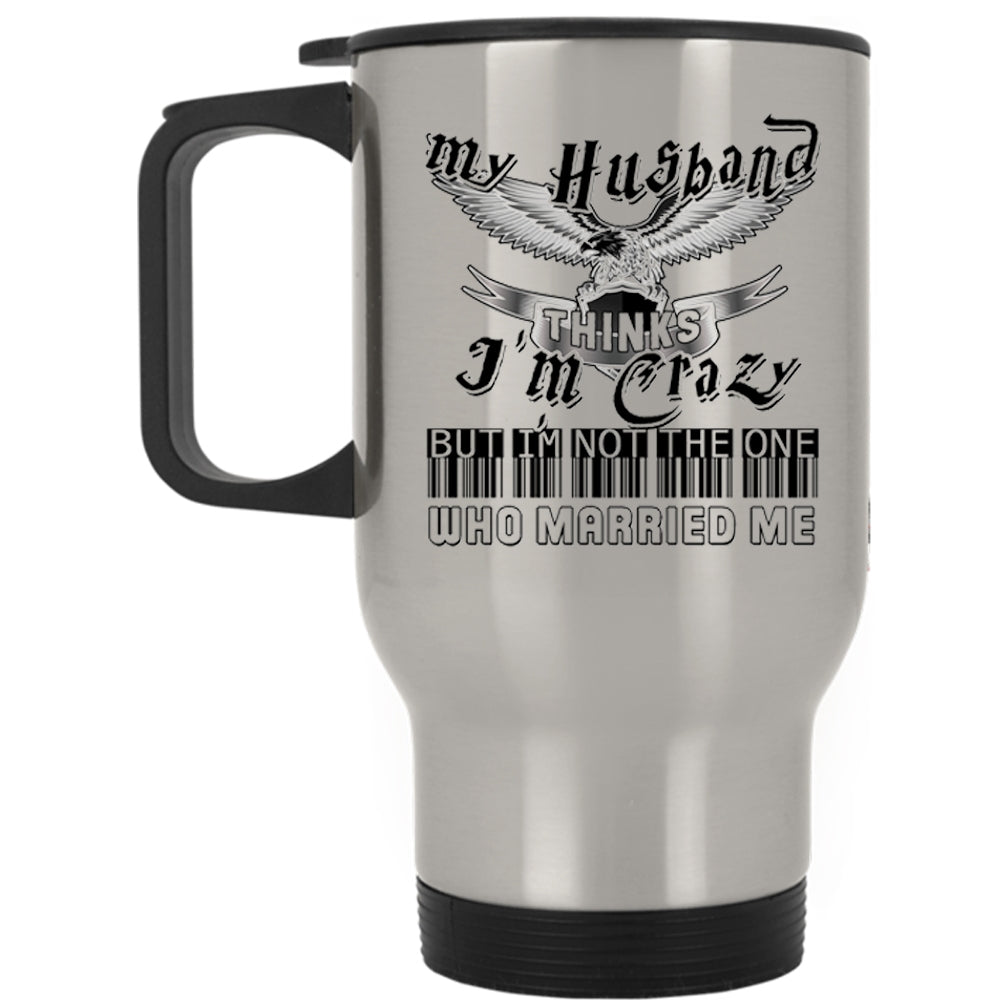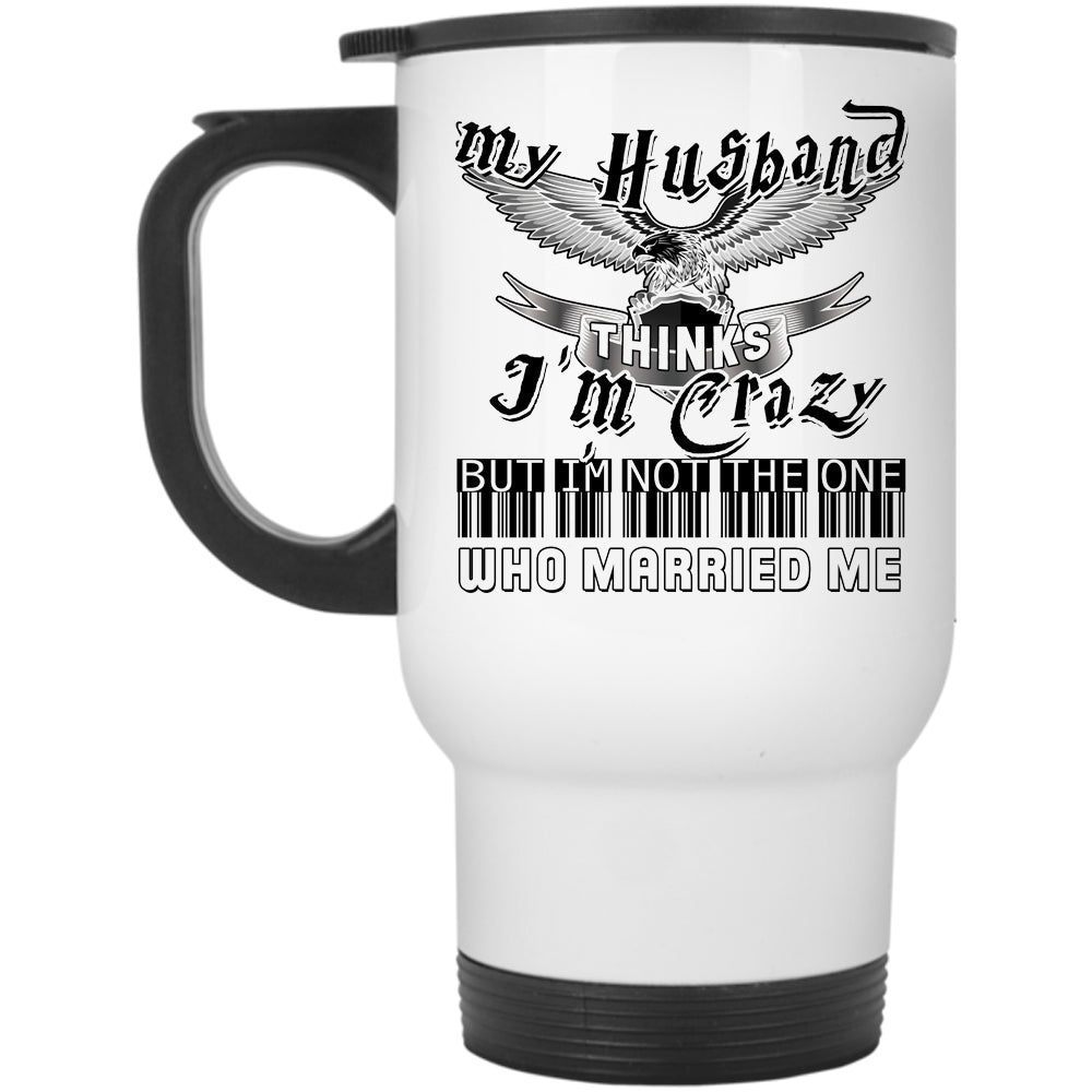 Beautiful Wife Travel Mug, My Husband Thinks I'm Crazy Mug