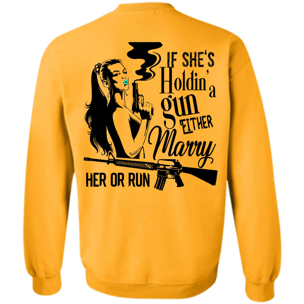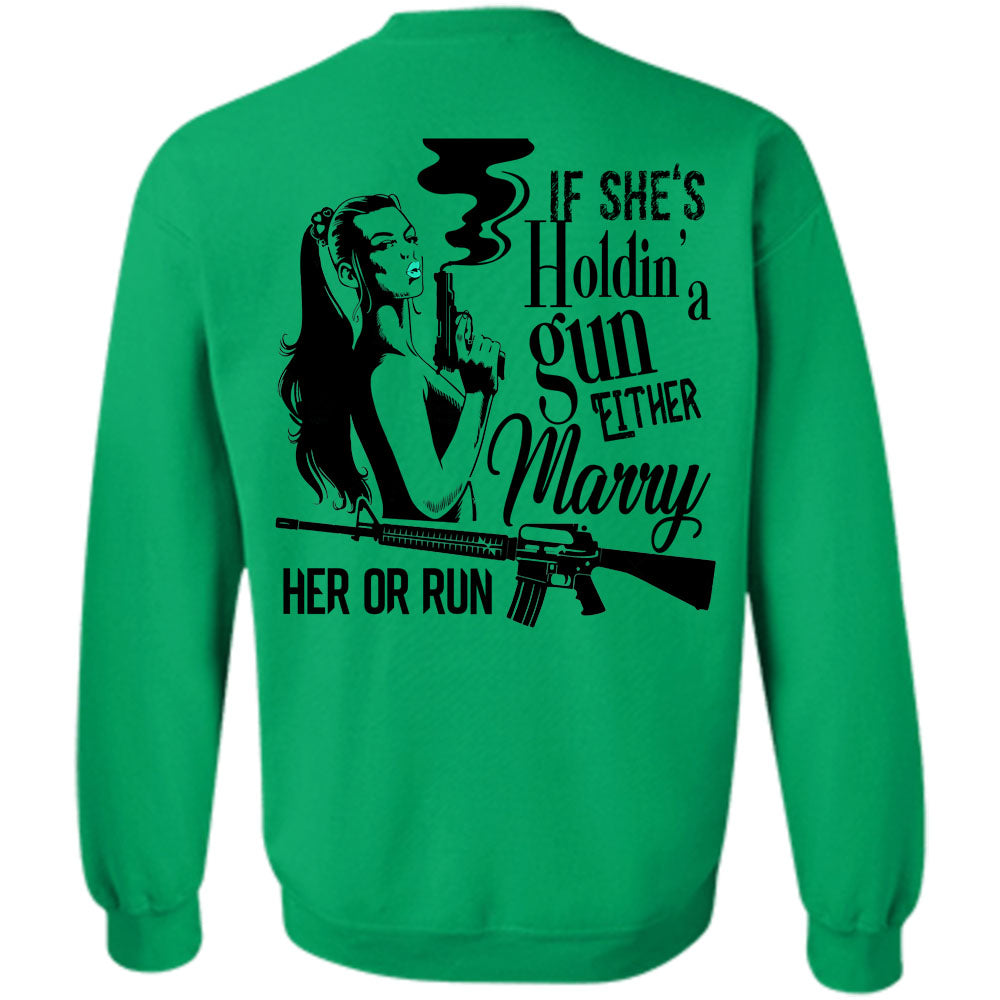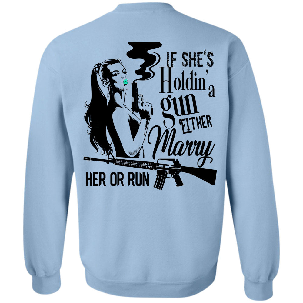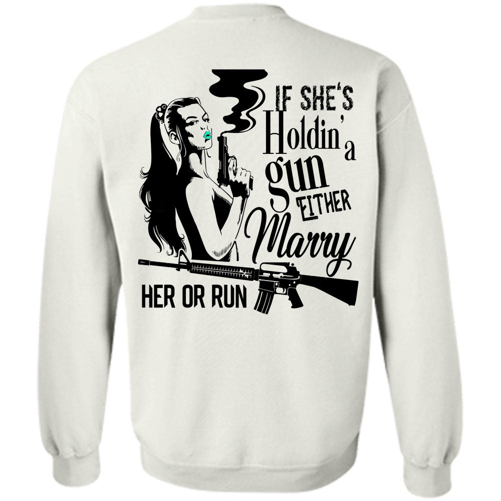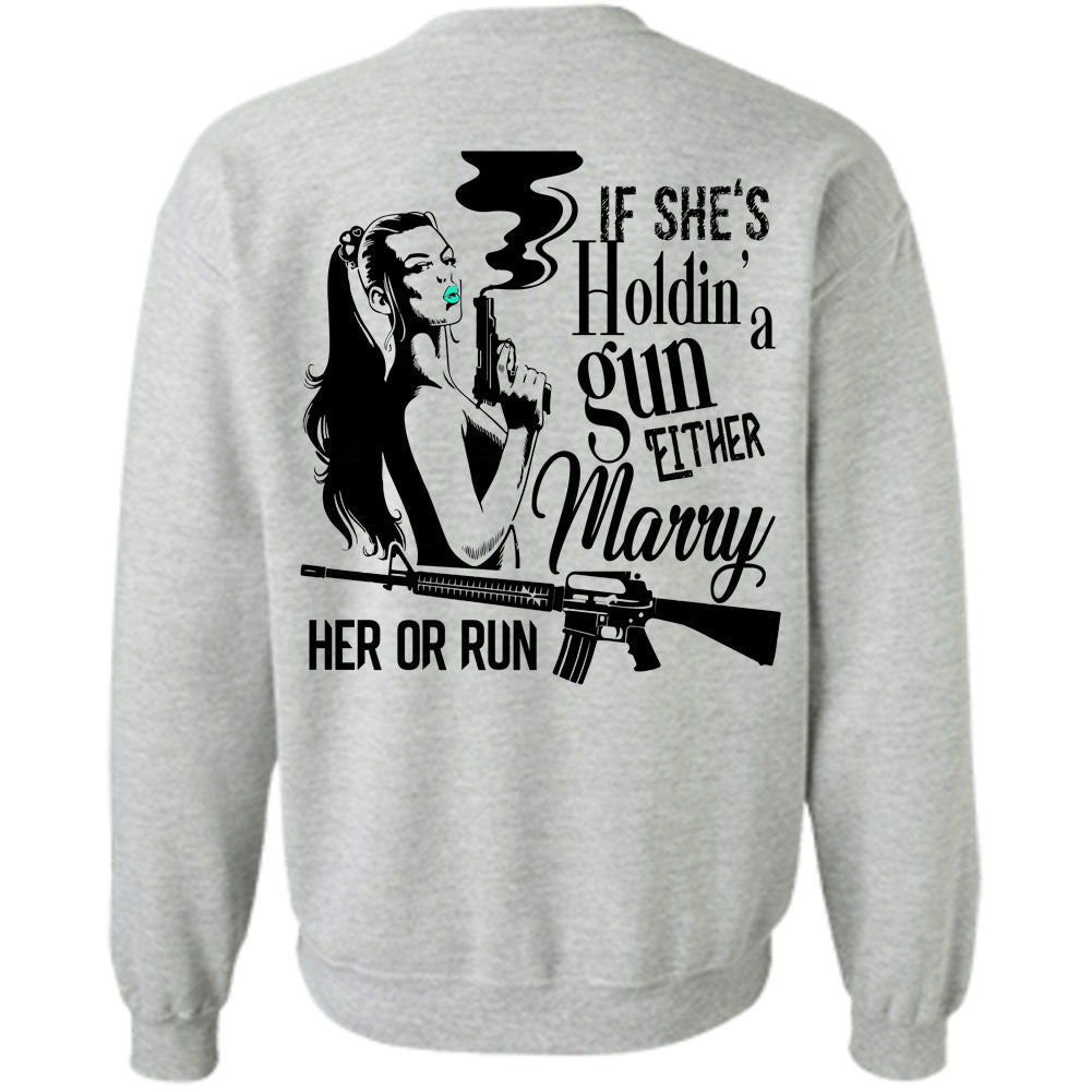 Being A Husband T Shirt, She's Holding A Gun Either Marry Her Or Run Sweatshirt