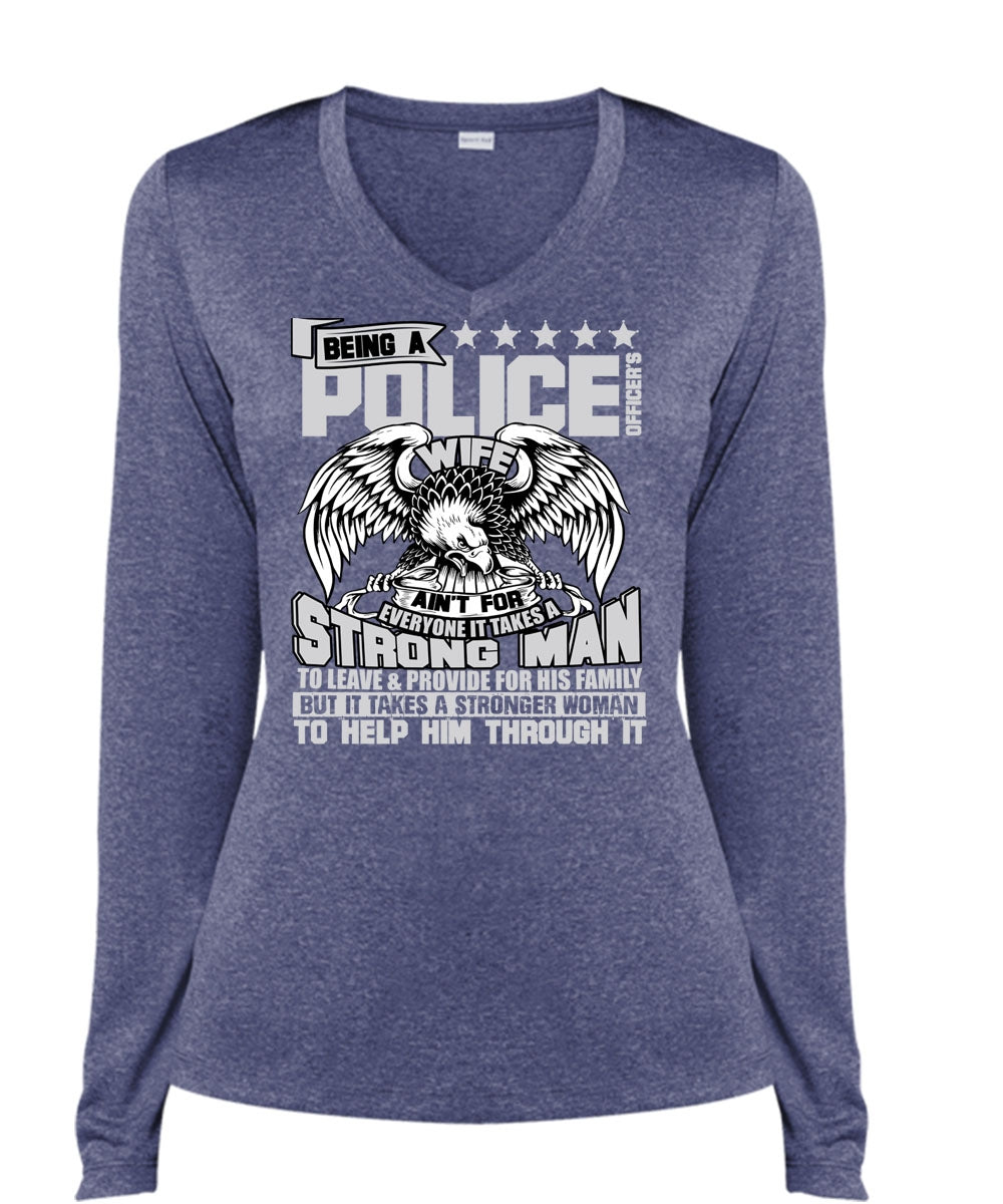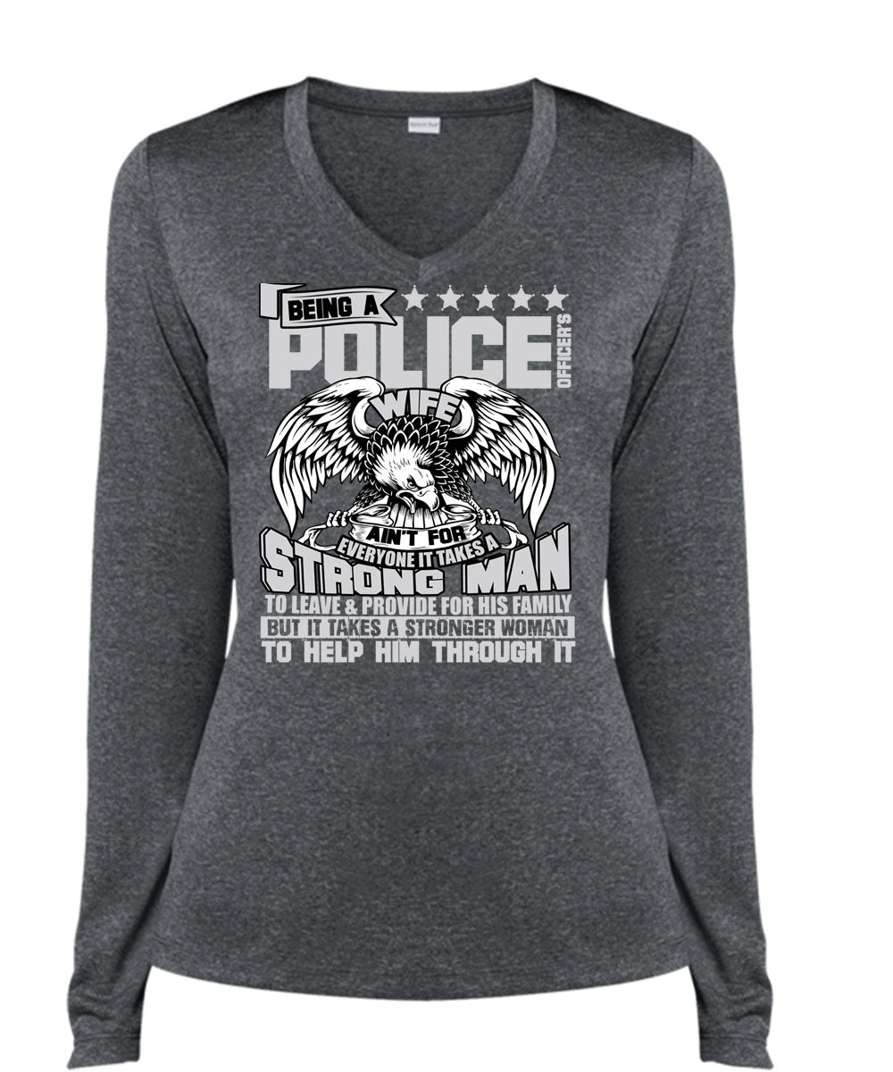 Being A Police Officer's Wife T Shirt, Strong Man T Shirt, Cool Shirt (Ladies LS Heather V-Neck)