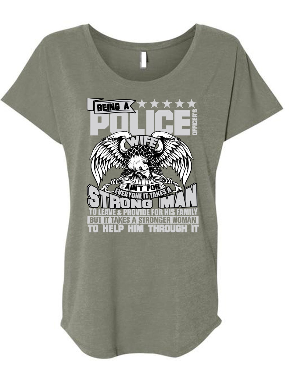 Being A Police Officer's Wife T Shirt, Strong Man T Shirt, Cool Shirt (Ladies' Triblend Dolman Sleeve)