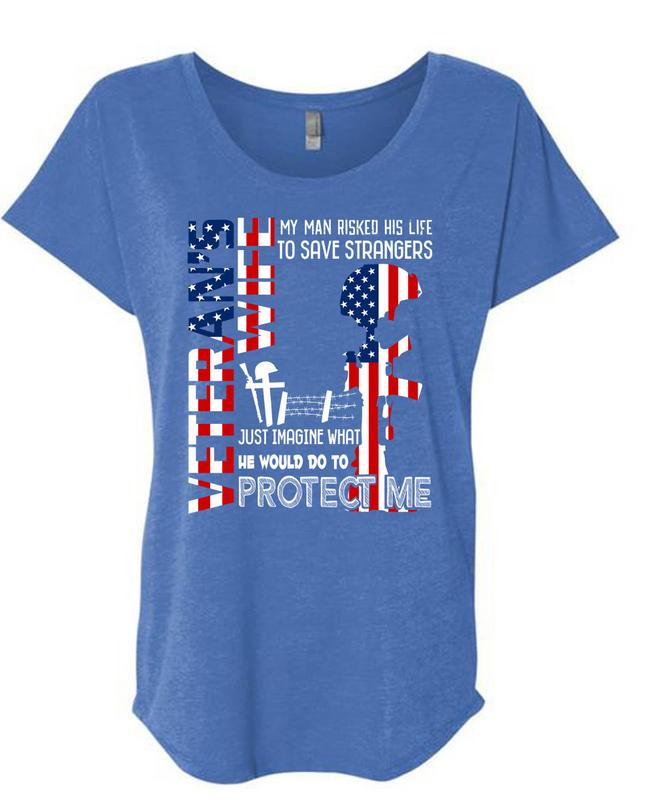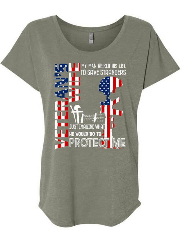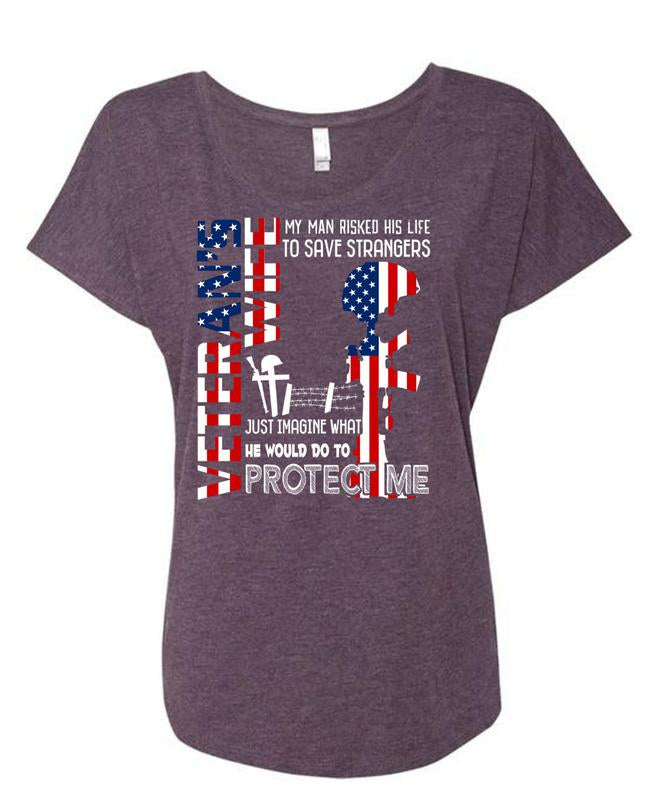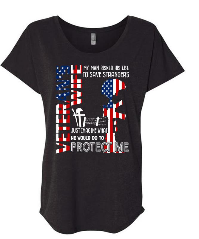 Being A Veteran Wife T Shirt, He Would Do To Protect Me T Shirt, Cool Shirt (Ladies' Triblend Dolman Sleeve)