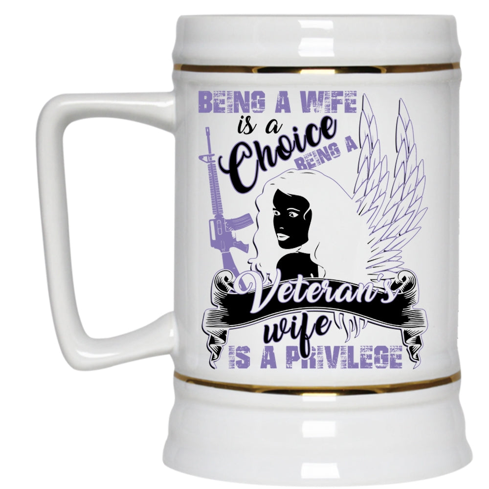 Being A Veteran's Wife Is A Privilege Beer Stein 22oz, Being A Wife Is A Choice Beer Mug